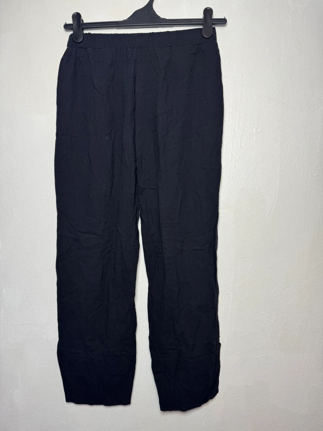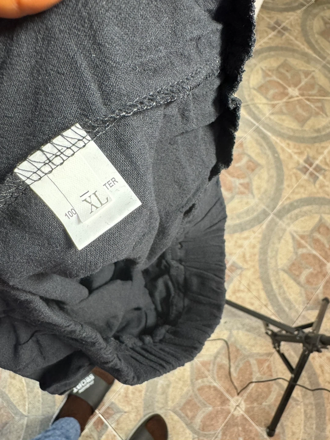 These are black pants in size XL. They're made of a comfortable fabric. These pants are suitable for everyday wear.