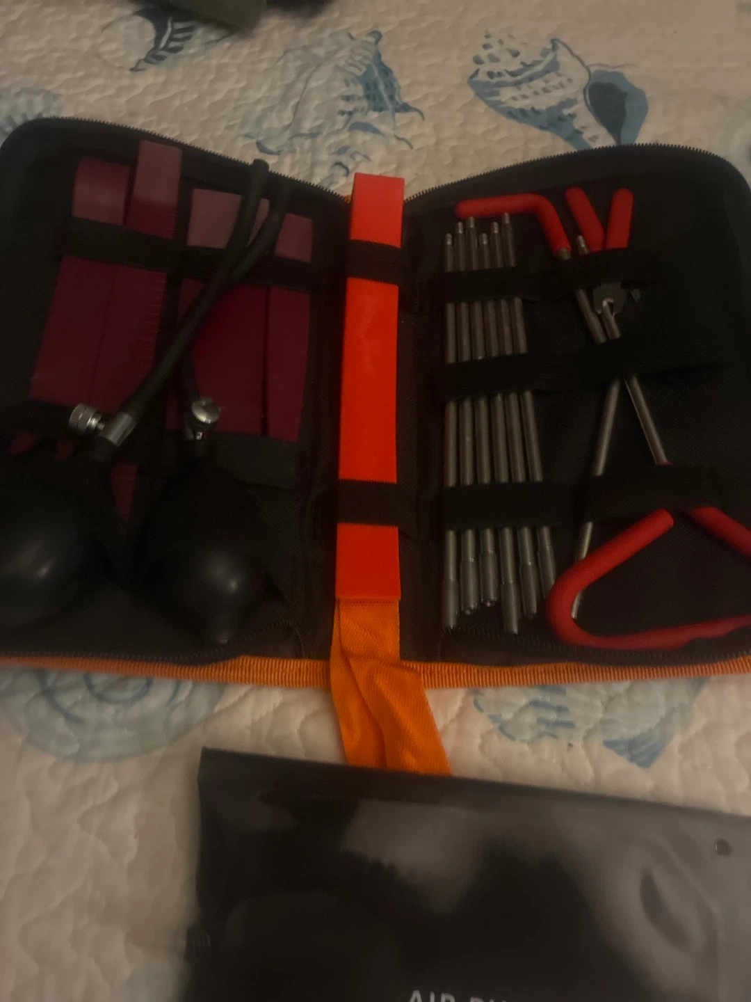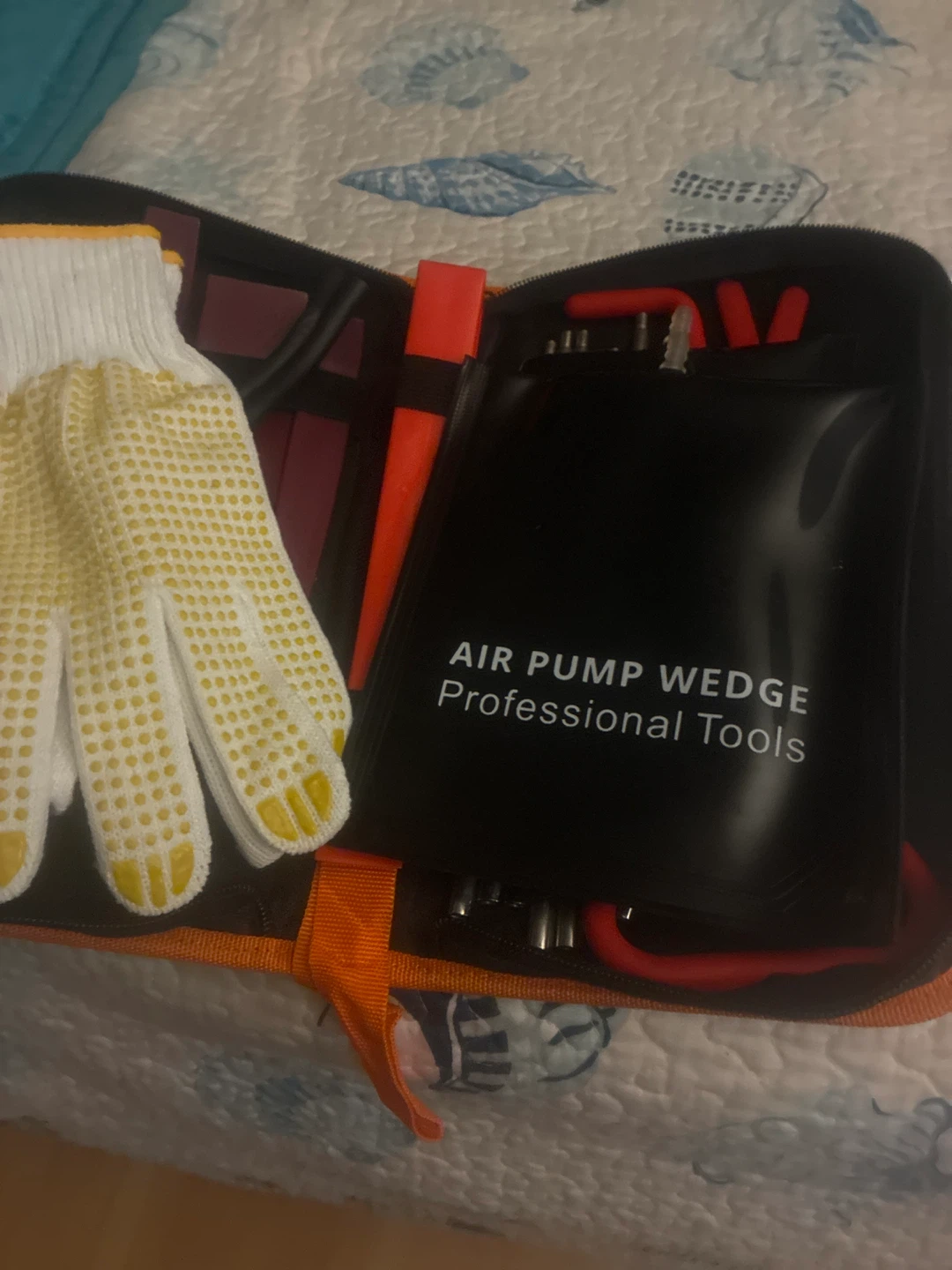 Selling a CODGEO Air Pump Wedge Professional Tools set. It comes in a convenient carrying case to keep everything organized and protected. Also included are a pair of gloves!