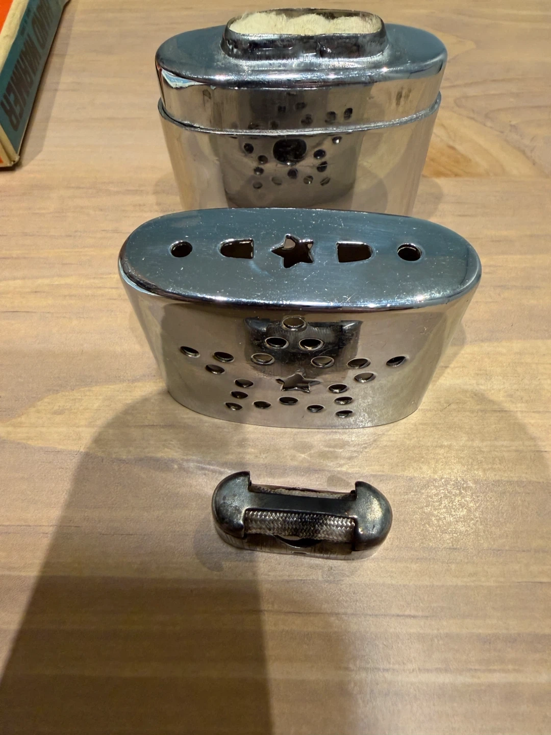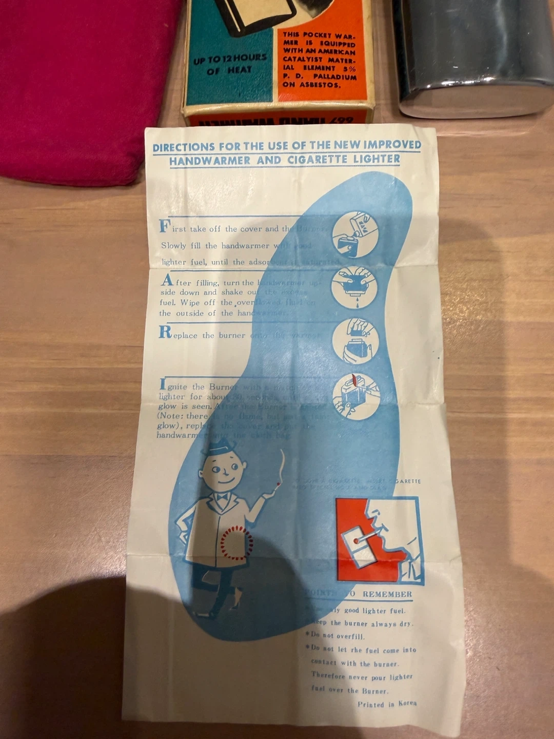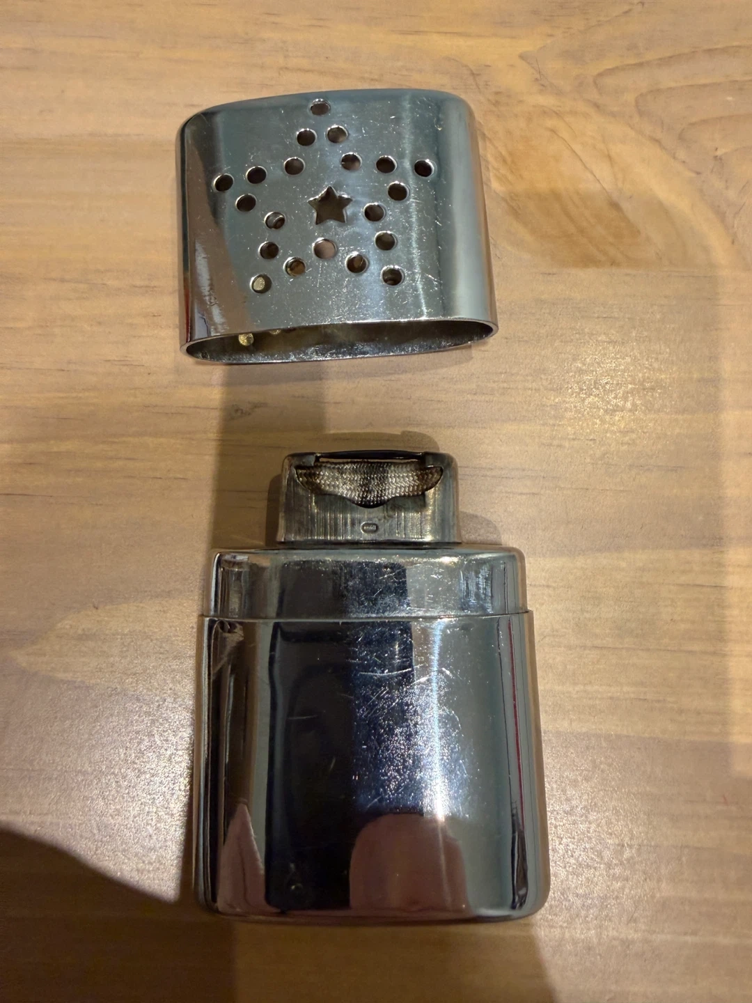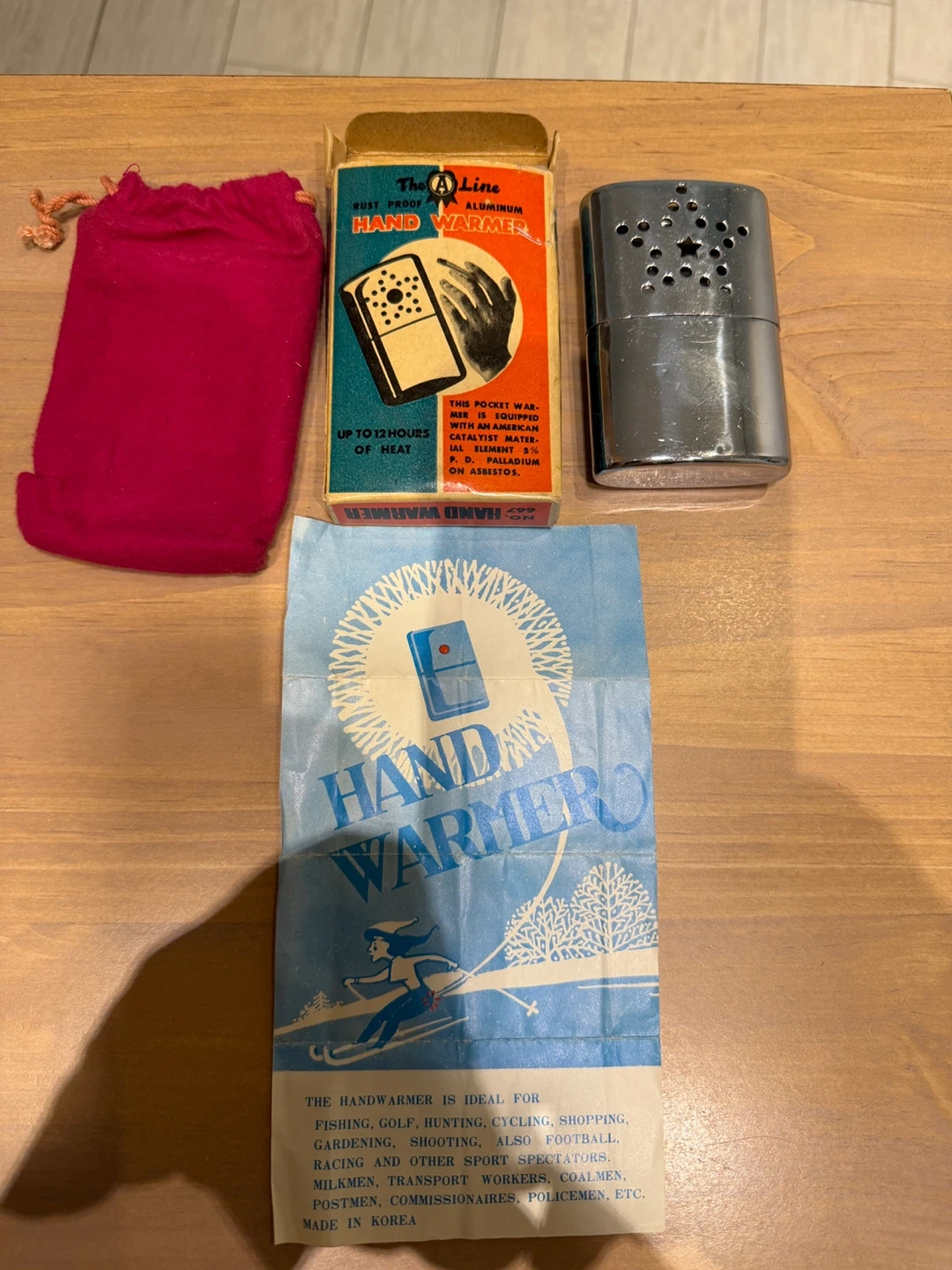 This Antique pocket warmer and Cigarette lighter provides up to 12 hours of heat. It's made of aluminum and includes a burner, wick, and a protective pouch. The hand warmer is ideal for outdoor activities.