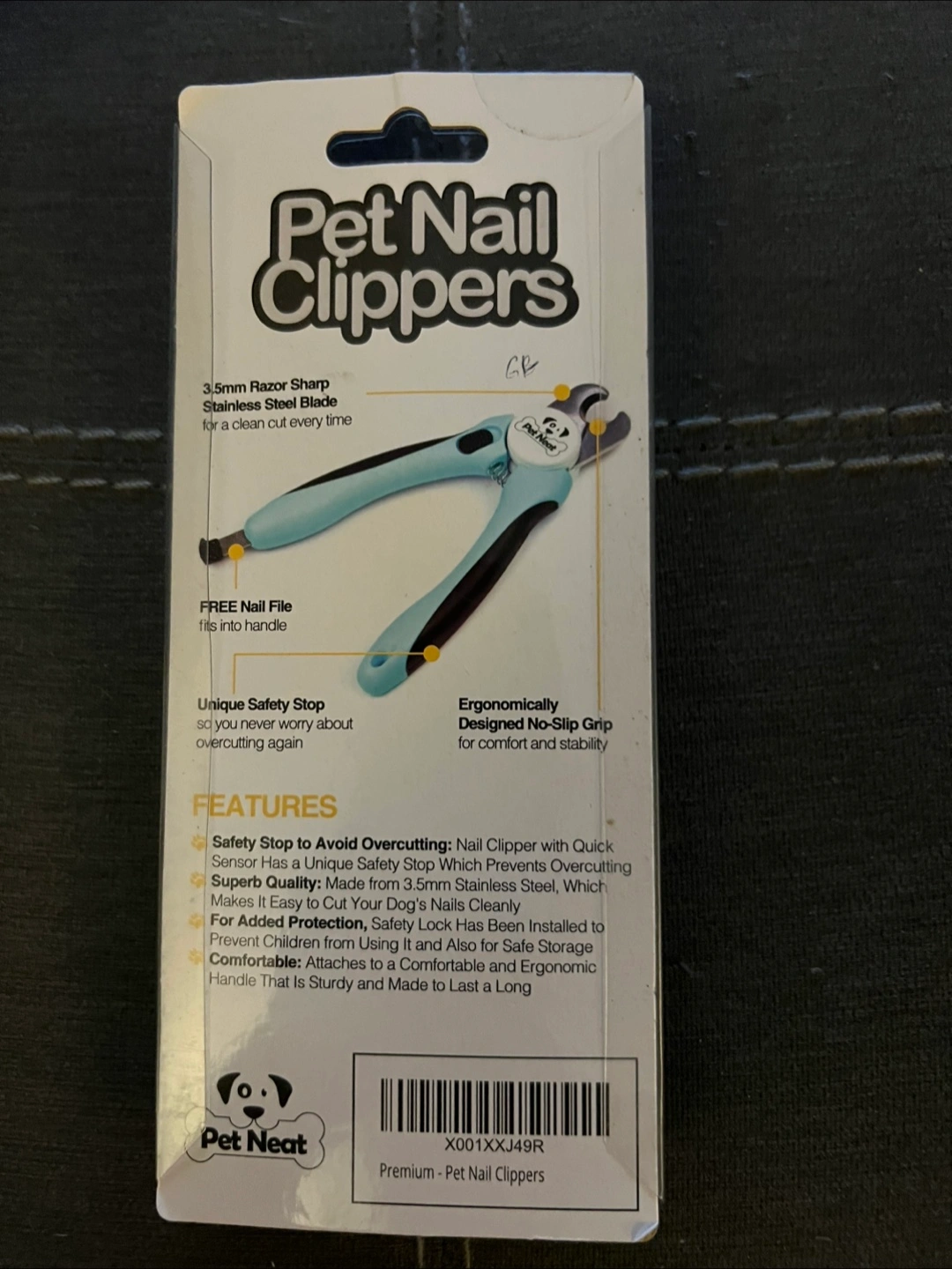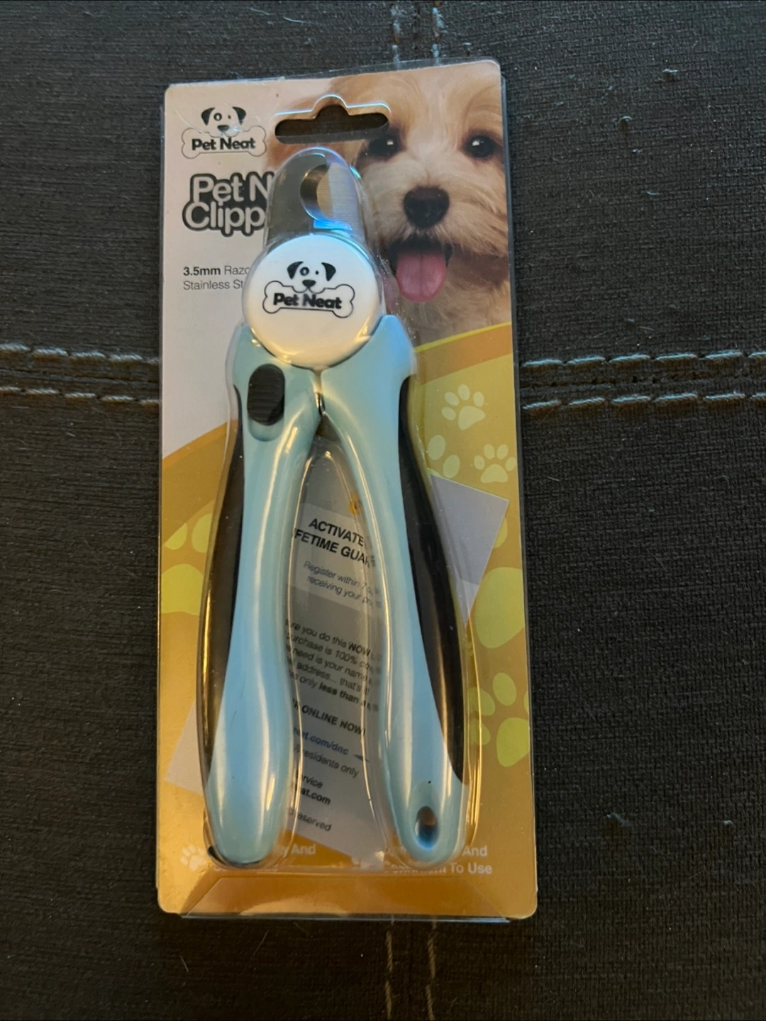 Selling a pair of Pet Neat Premium Nail Clippers for dogs! They feature a 3.5mm razor sharp stainless steel blade for a clean cut every time. The unique safety stop helps you avoid overcutting, and the ergonomic design ensures a comfortable, stable grip. Also includes a free nail file that fits into the handle!