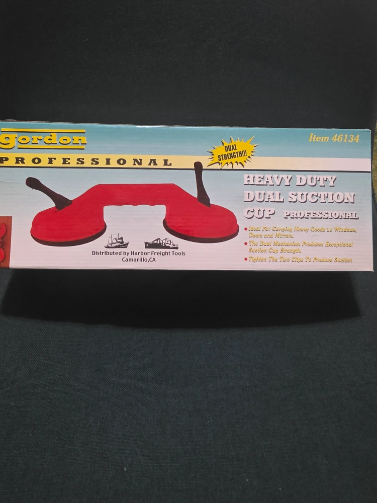 Selling a brand new Gordon Professional heavy-duty dual suction cup! It's ideal for carrying heavy goods like windows, doors, and mirrors. The dual mechanism produces exceptional suction cup strength. Just tighten the two clips to produce suction. Item number 46134