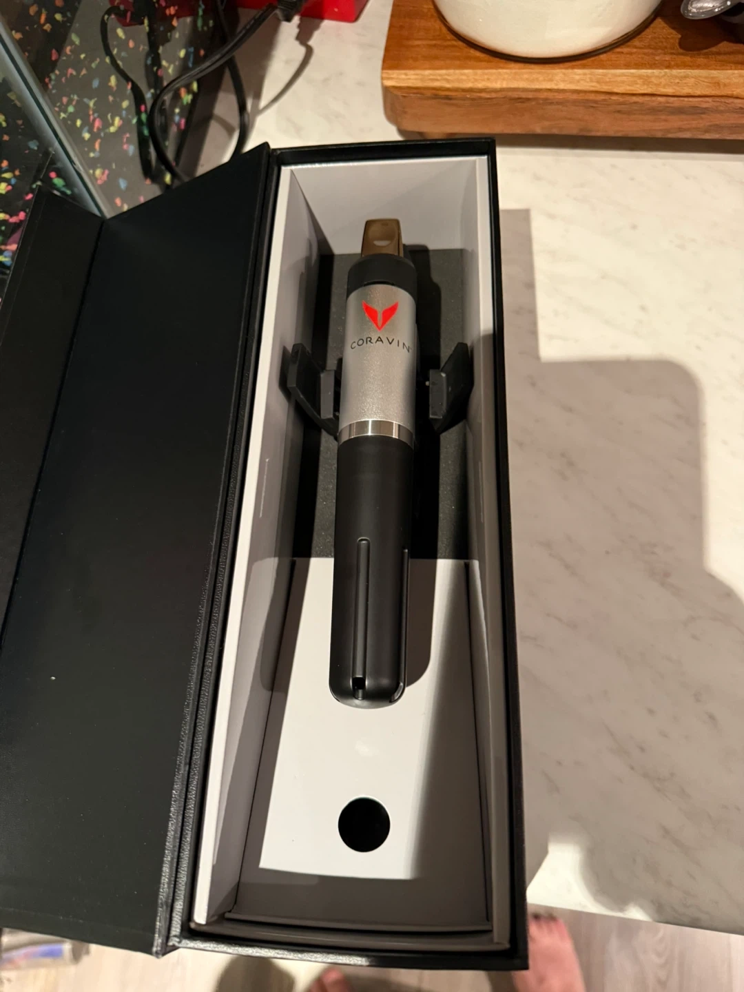 This is a Coravin wine preserver system. It's black and silver. Includes original box and packaging comes with stand price is negotiable. It goes for $300 new.