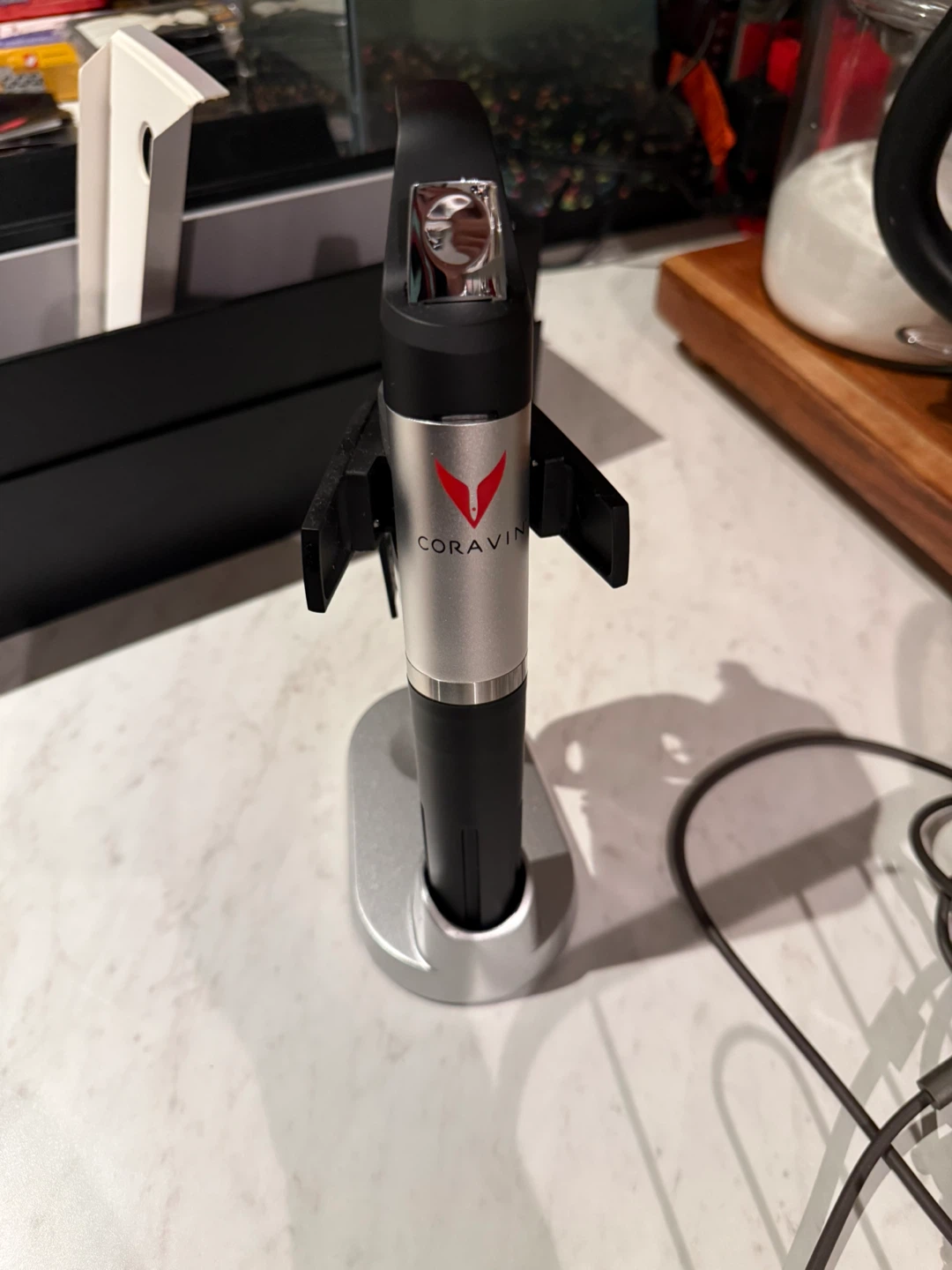 This is a Coravin wine preserver system. It's black and silver. Includes original box and packaging comes with stand price is negotiable. It goes for $300 new.