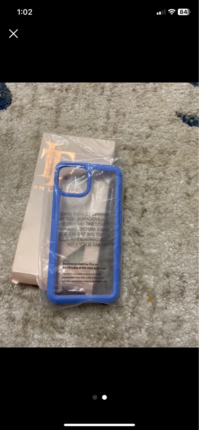 This is an OtterBox Symmetry Series case for an iPhone 13 Pro Max. It's a blue, clear case with protective film still on both sides. It includes the original box.