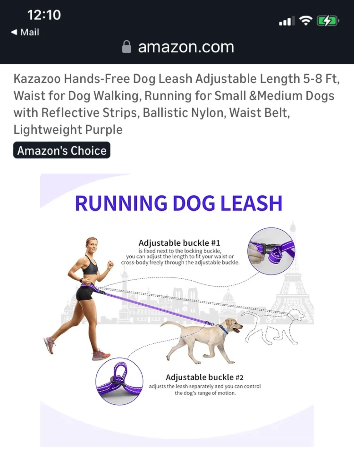 Kazazoo Hands-Free Dog Leash - Adjustable Purple Nylon