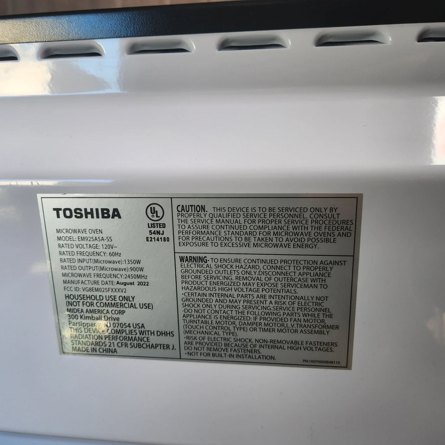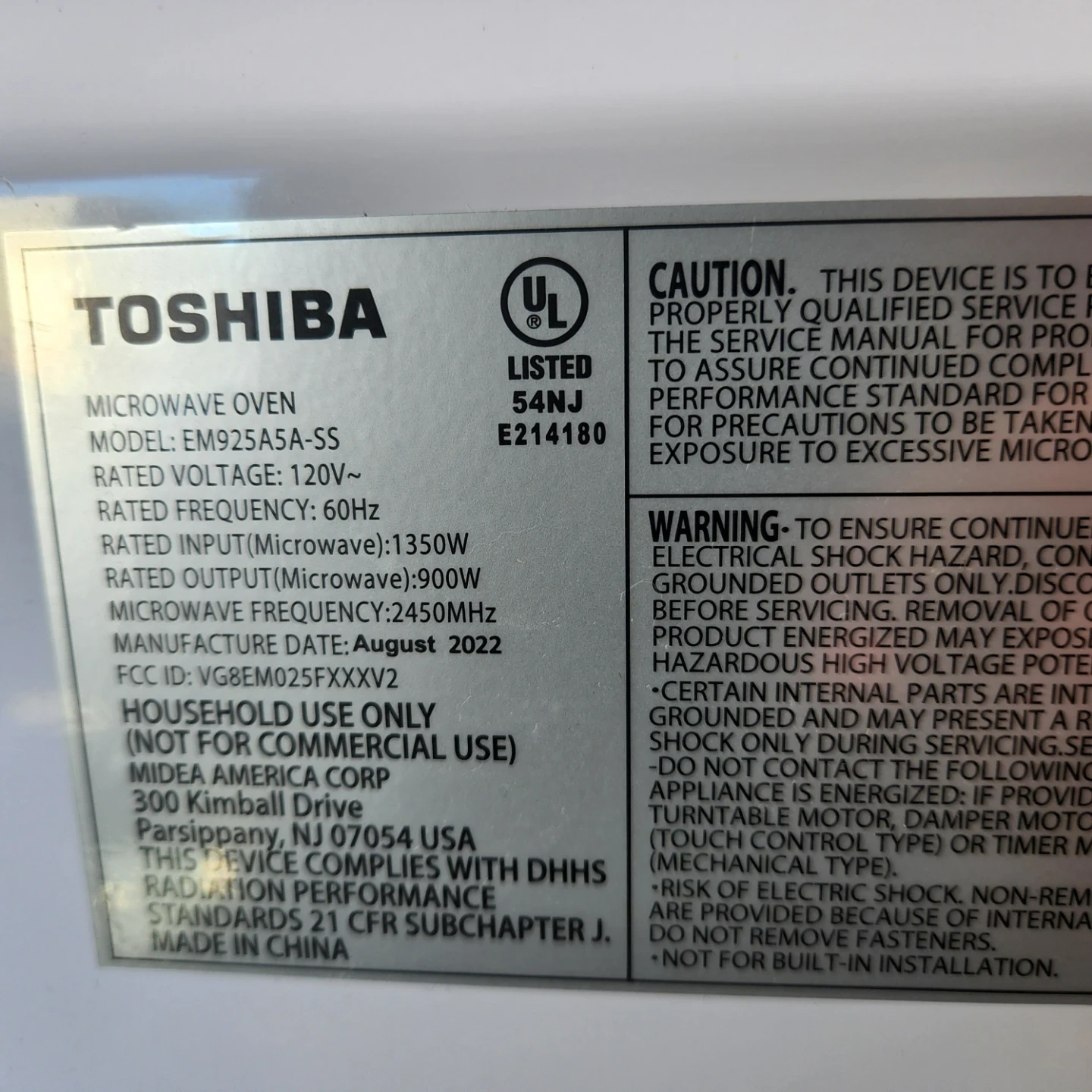 Microwave oven with 1350W rated input and 900W rated output. Manufactured in August 2022. It's a household use model.can be deliver depend on location. Cash only