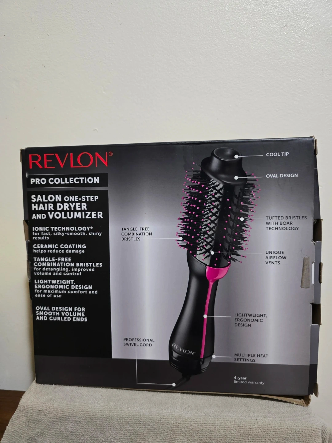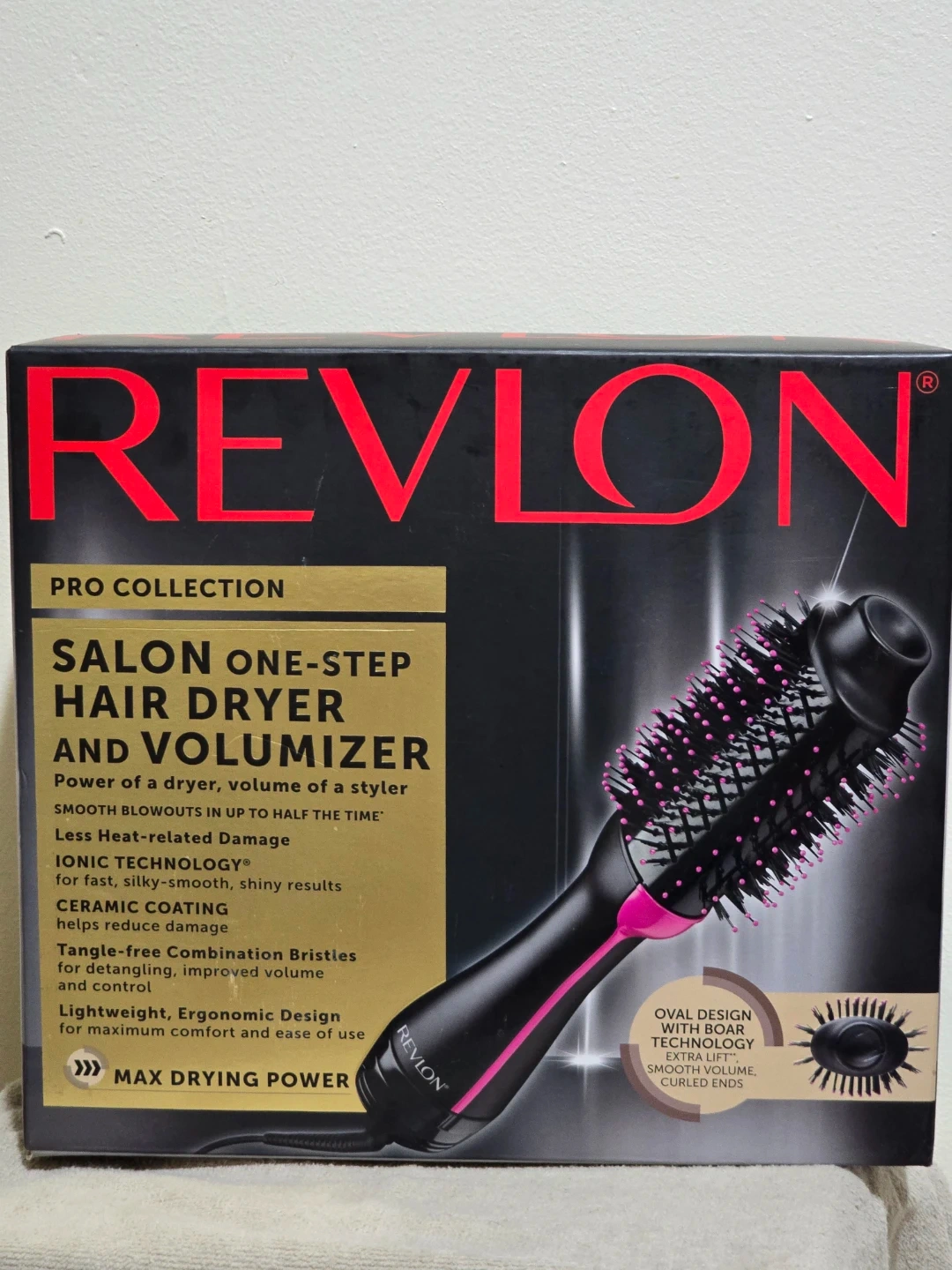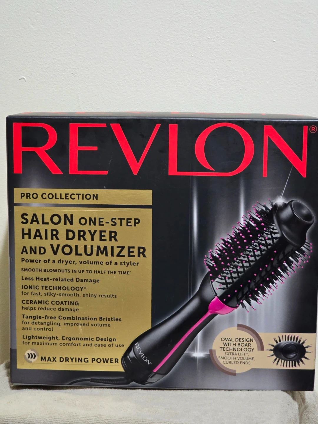 Brand new Revlon hair dryer and styler in the classic black and pink design. Never used, in perfect condition.