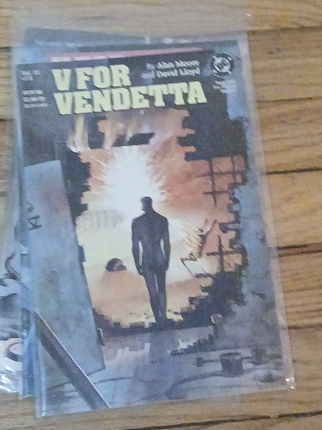Selling a copy of V for Vendetta by Alan Moore and David Lloyd. It's in good condition and ready for a new home!