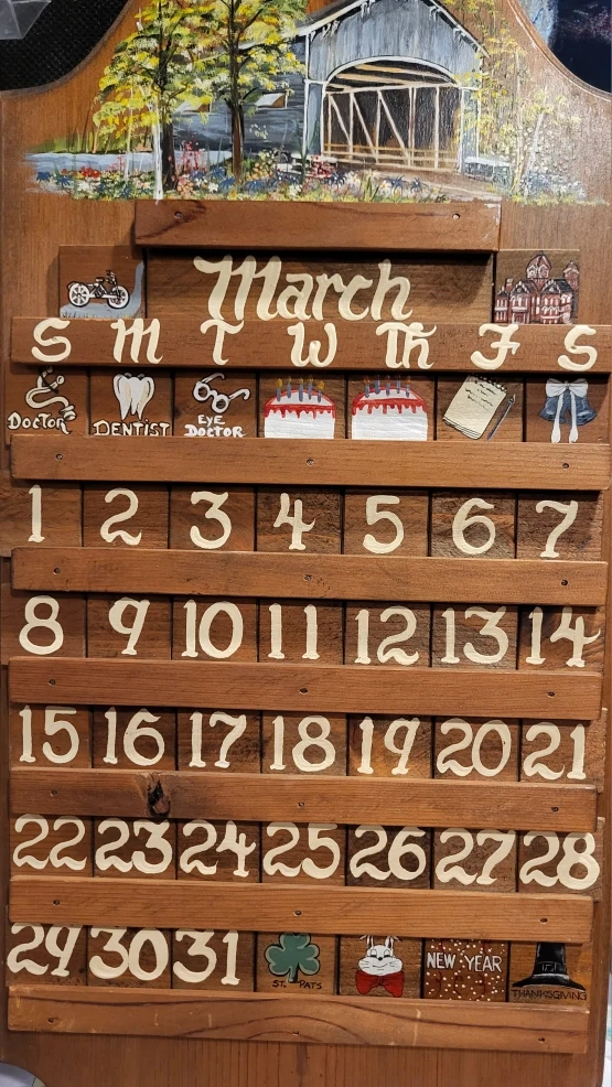 Wooden Perpetual Calendar with Hand-Painted Barn Scene