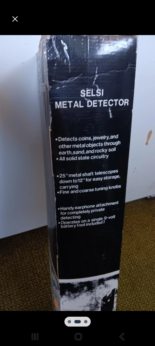 This Selsi metal detector is designed for finding coins, jewelry, and other metal objects. It features a 25" metal shaft that telescopes down to 12" for easy storage. It also has fine and coarse tuning knobs with a sound-off buzz signal. Operates on a single 9-volt battery (not included).