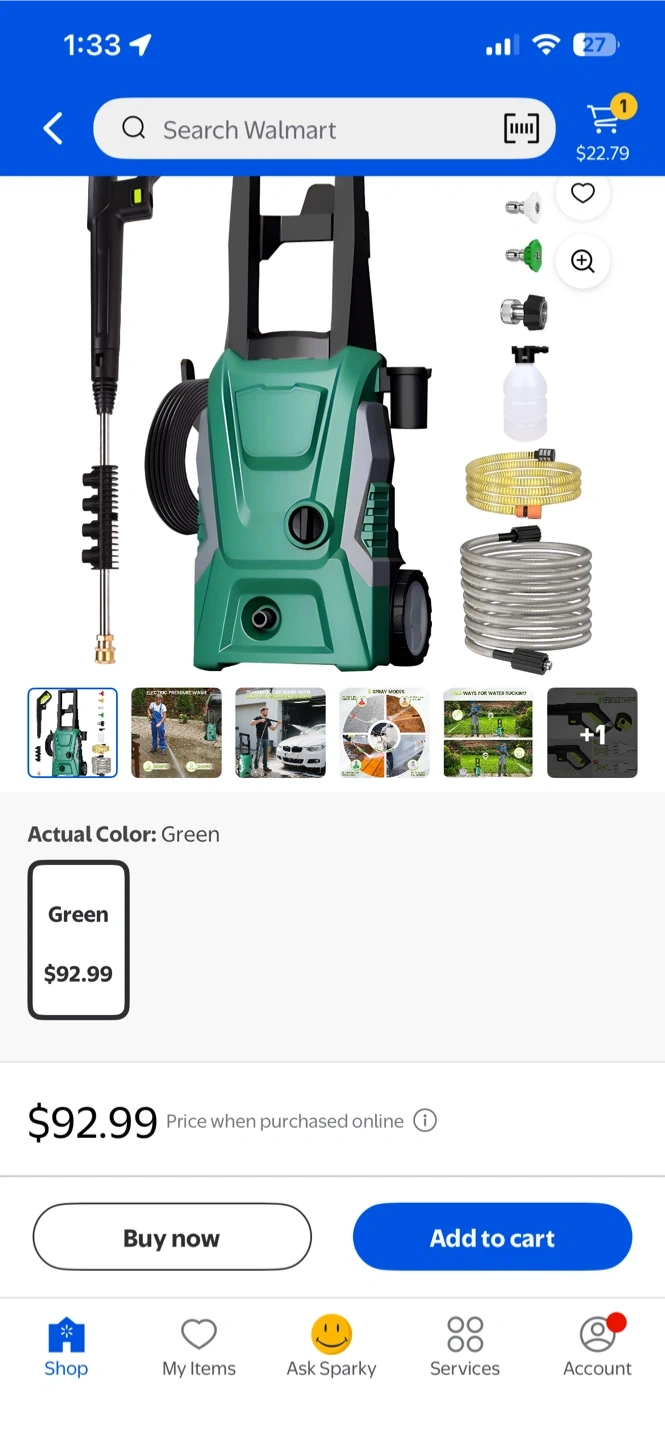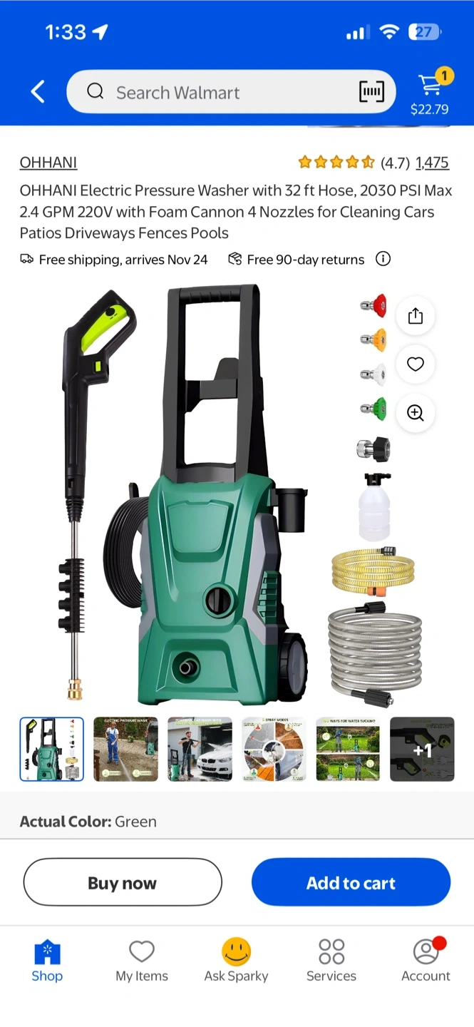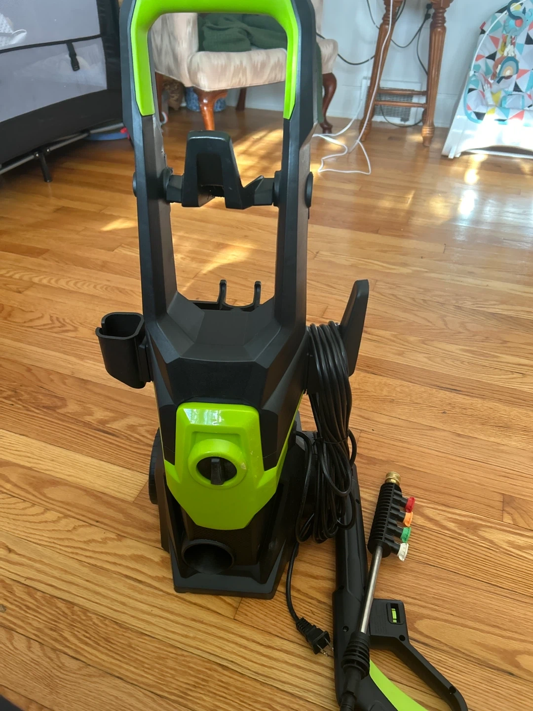 Selling an OHHANI electric pressure washer in green! It comes with a 32 ft hose, 2030 PSI, 2.4 GPM, and a foam cannon with 4 nozzles. Perfect for cleaning cars, patios, driveways, fences, and pools