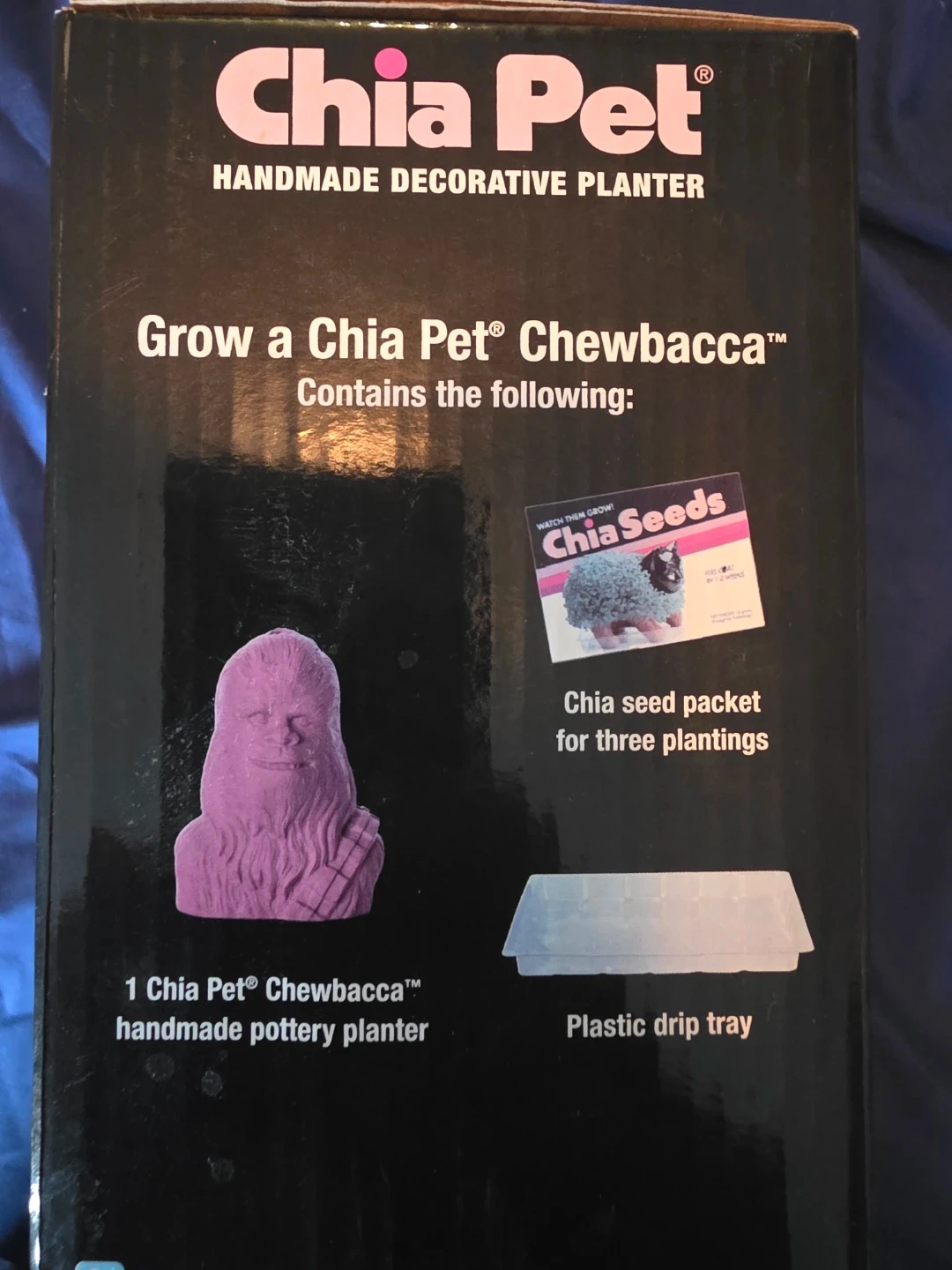 Grow a Chia Pet Chewbacca handmade pottery planter! Contains the planter, chia seeds for three plantings, and a plastic drip tray. Fun for Star Wars fans!