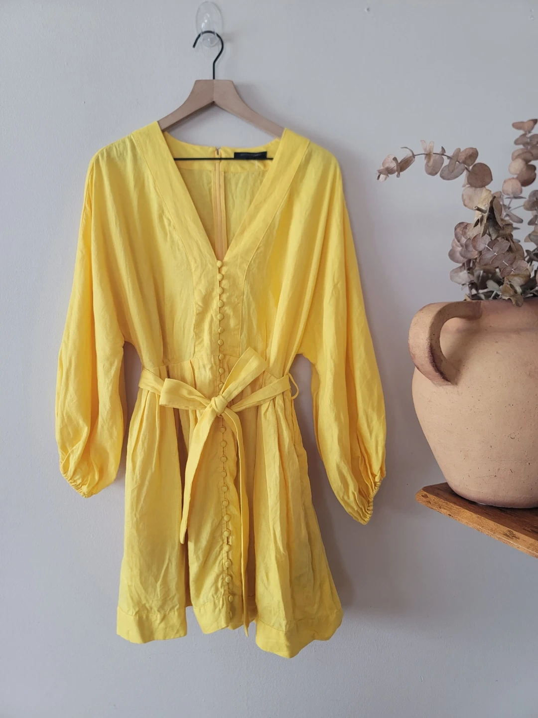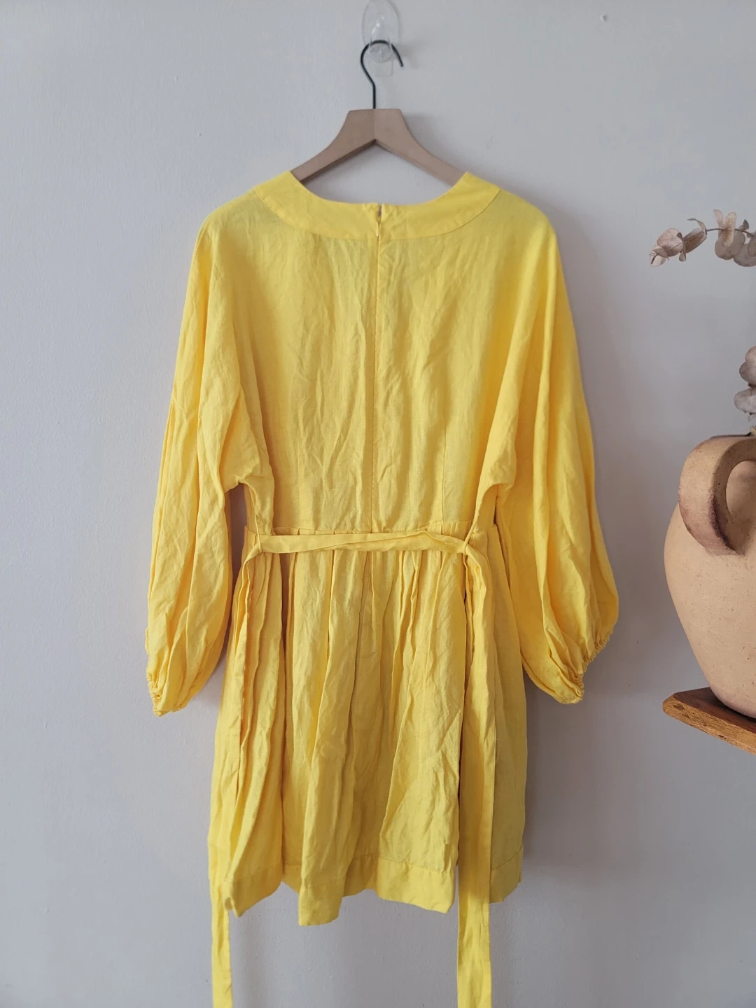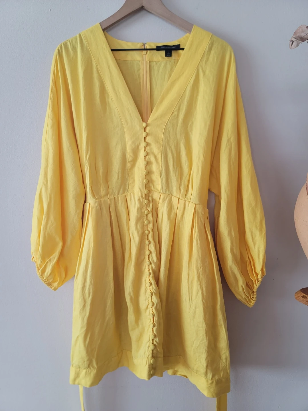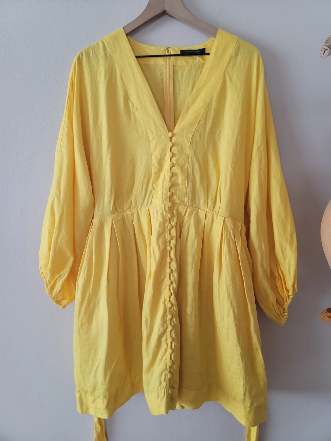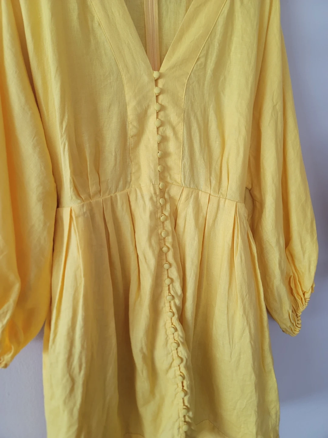 Banana Republic Sunny Yellow 100% Linen Dress Sz L Cotton Lining