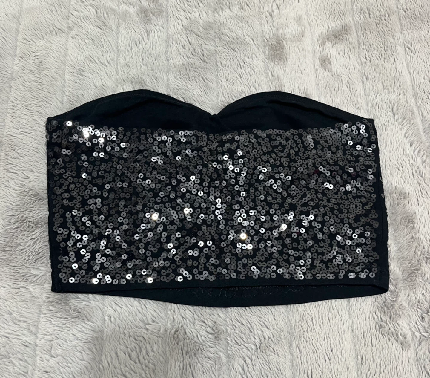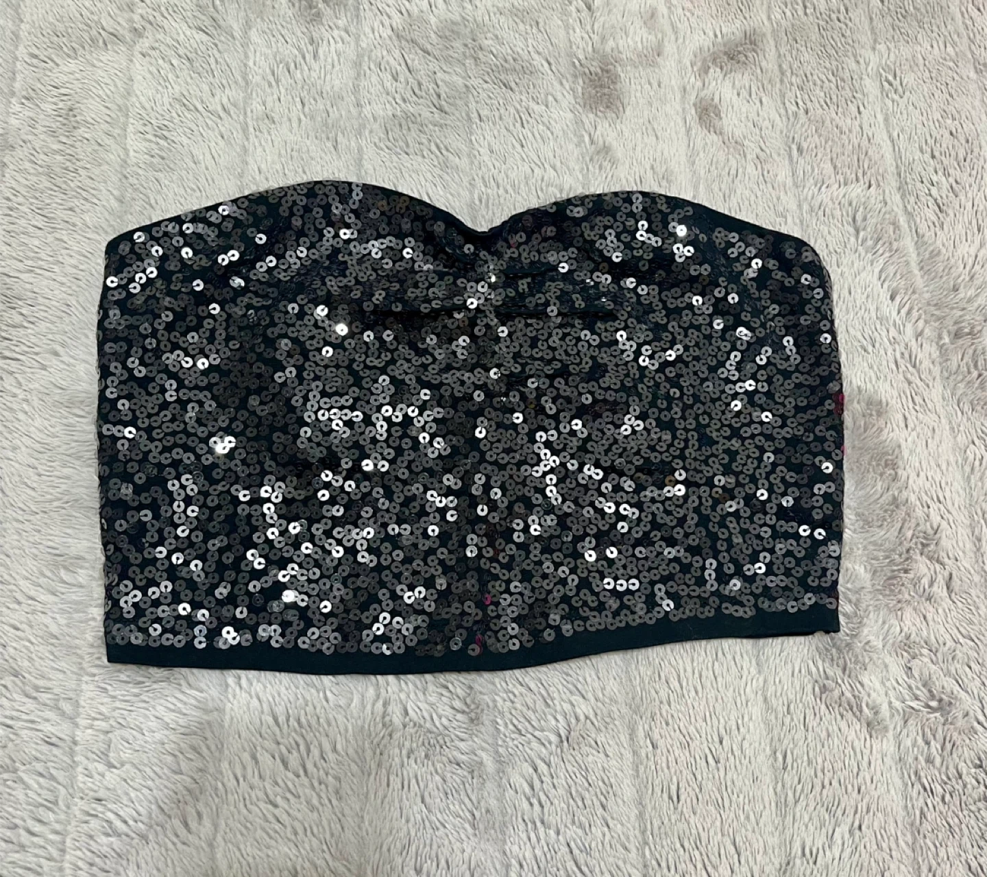 Sparkly sequin strapless tube top by Express. Made with a stretchy fabric for a comfortable fit.