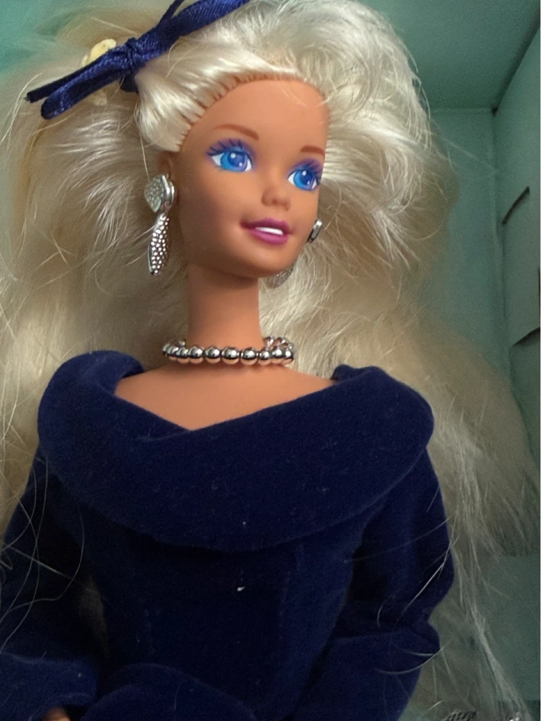 Vintage Barbie Doll in Blue Velvet Dress
