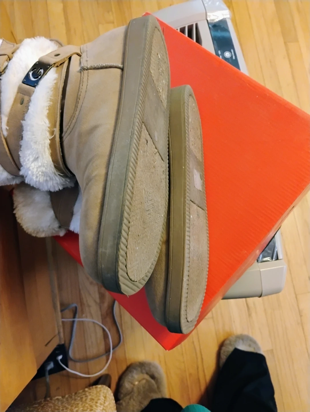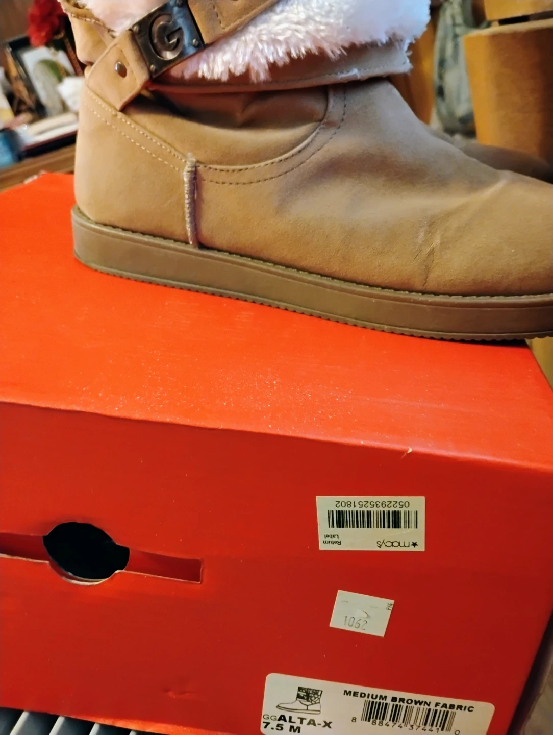 Selling a pair of Guess Alta-X boots in size 7.5M! These boots are a medium brown color and feature a cozy faux fur lining. The box is included, boots are gently used & in great condition. Pickup from Maspeth Queens, blks from Long Island Expwy. From a smoke & pet free home, check out my other shoes, boots, sandals & sneakers for greater deals on multiple purchases.