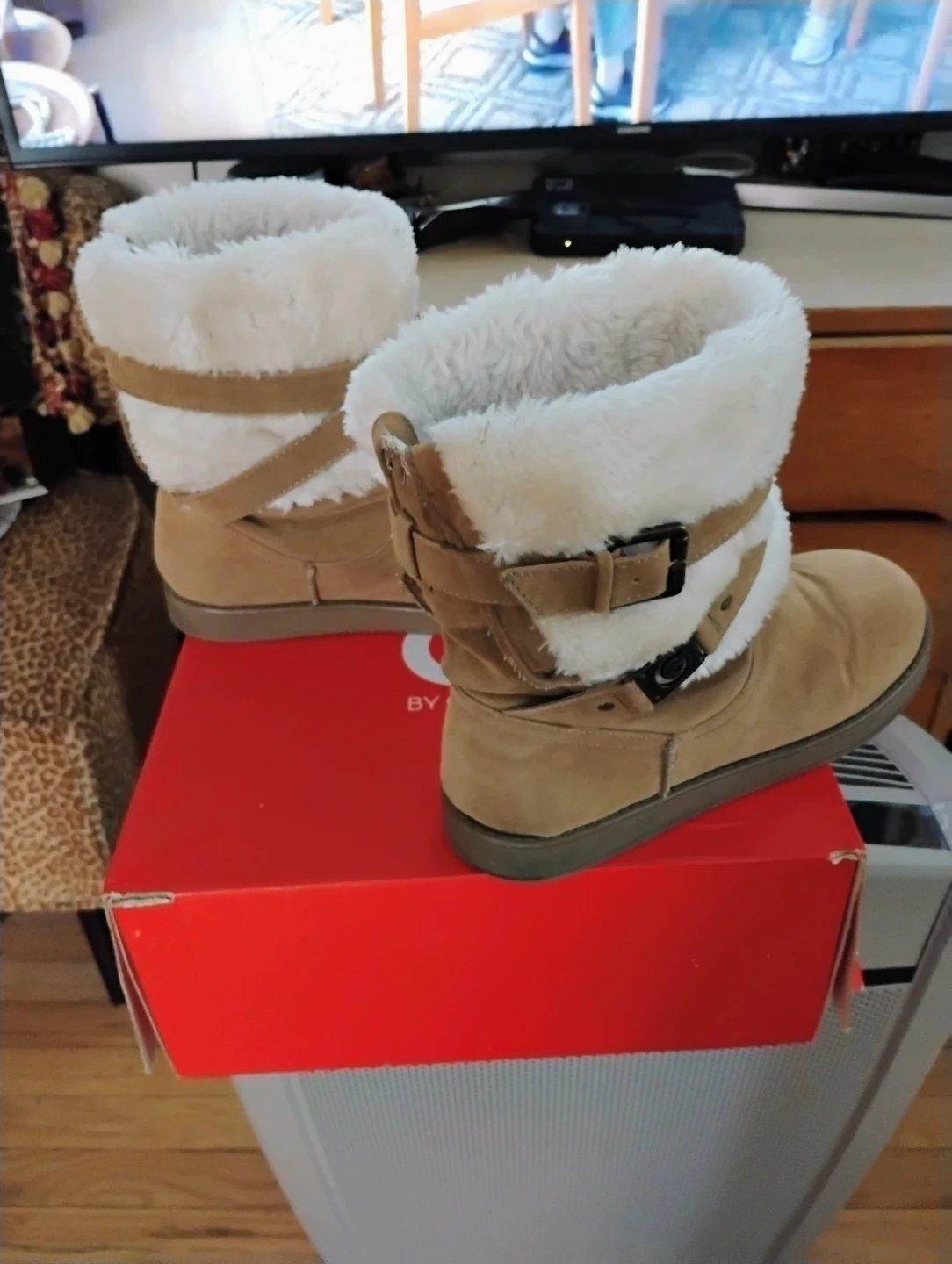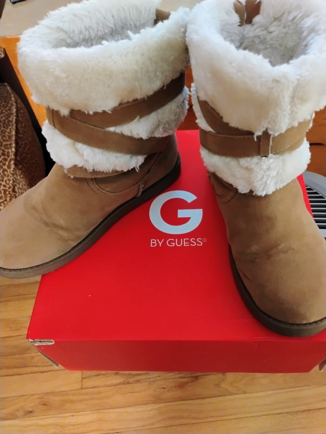 Selling a pair of Guess Alta-X boots in size 7.5M! These boots are a medium brown color and feature a cozy faux fur lining. The box is included, boots are gently used & in great condition. Pickup from Maspeth Queens, blks from Long Island Expwy. From a smoke & pet free home, check out my other shoes, boots, sandals & sneakers for greater deals on multiple purchases.