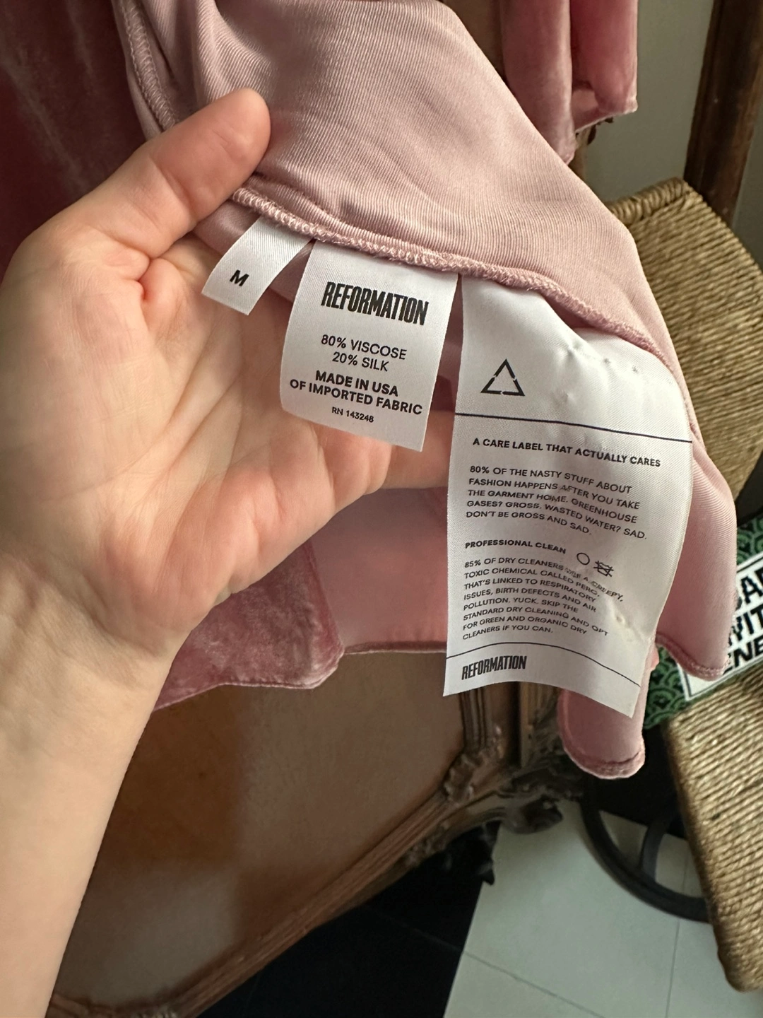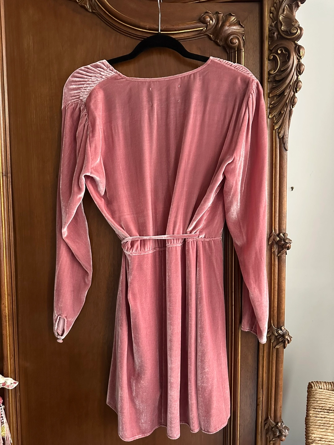 Reformation Blush Pink Velvet Wrap Mini Dress Size Medium