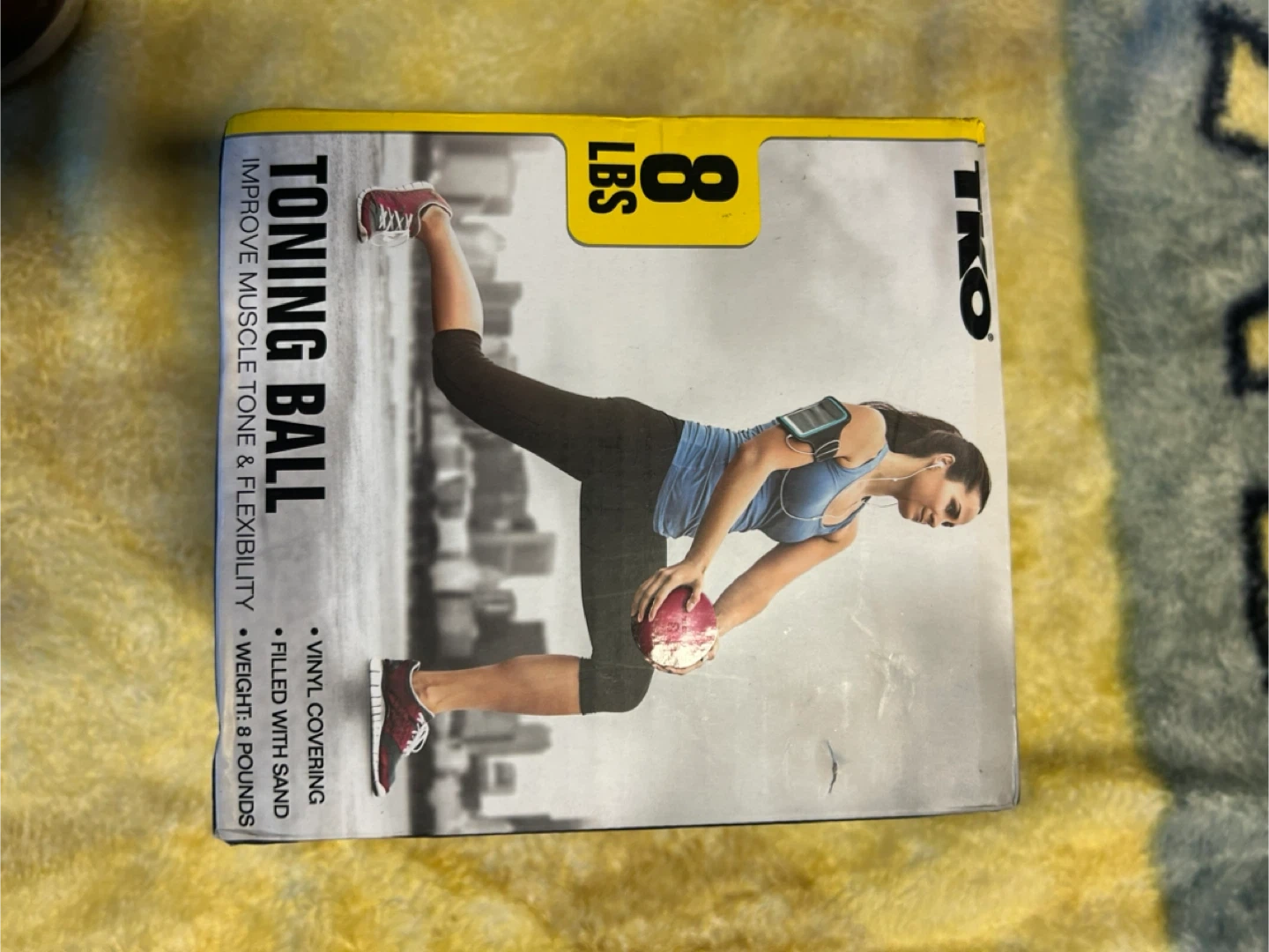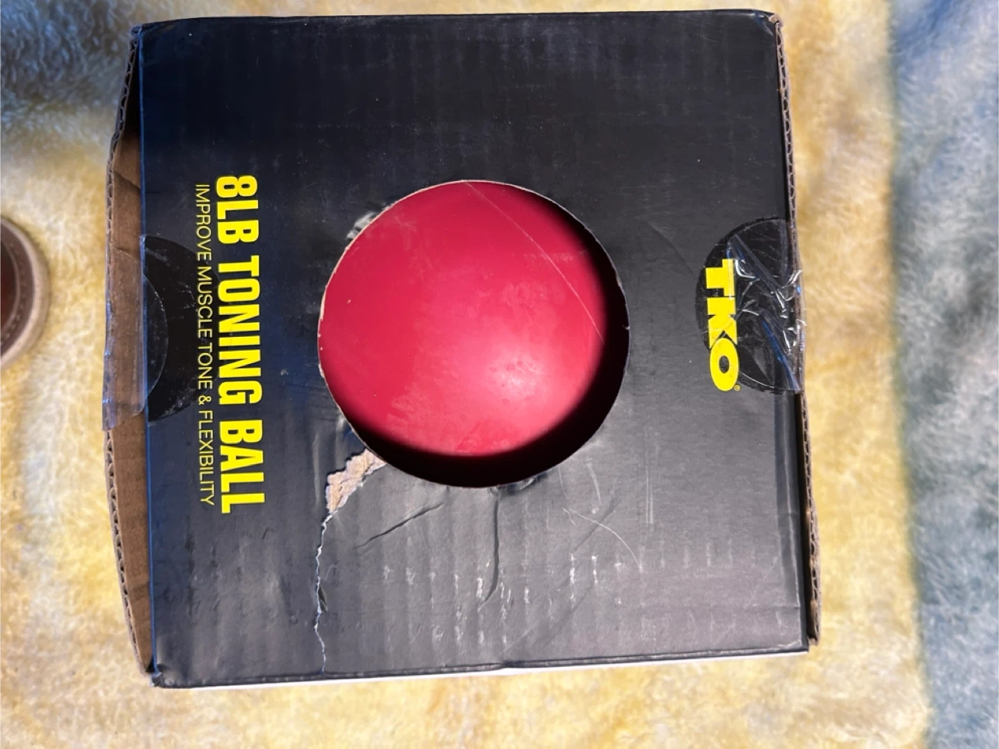 Selling a TKO 8lb toning ball! The box says it's designed to improve muscle tone and flexibility. It's filled with sand and has a vinyl covering. It weighs 8 pounds brand new in box