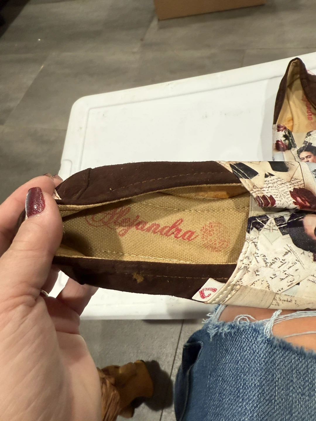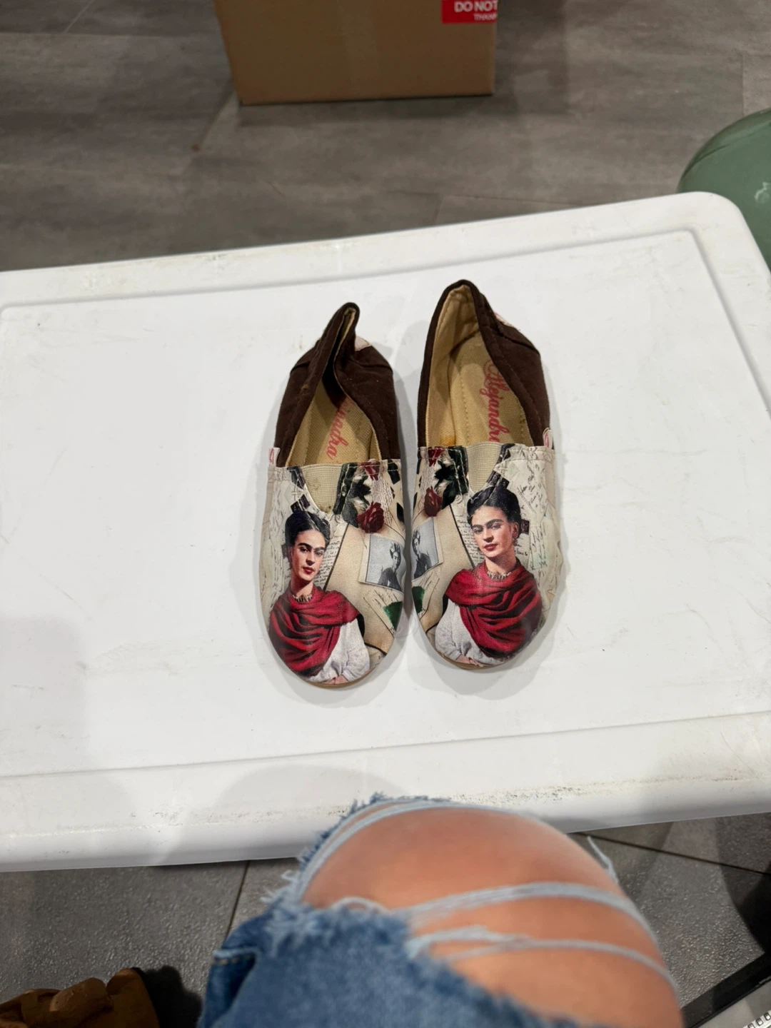 Cute Alejandra slip-on shoes with a Frida Kahlo design! They're perfect for adding a unique touch to your outfit and are super comfy for everyday wear