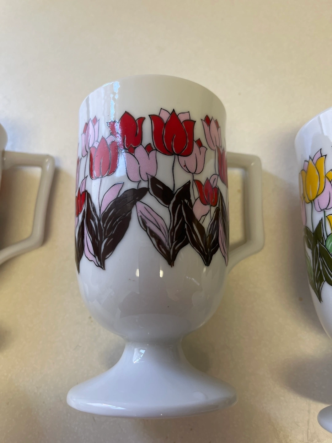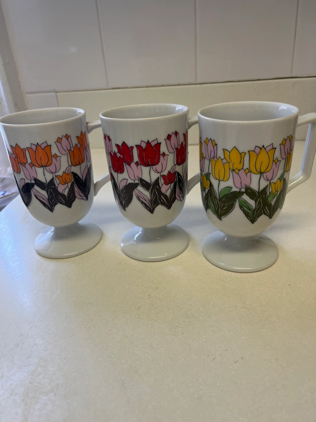 Vintage Pedestal Tulip Mugs Set of 3