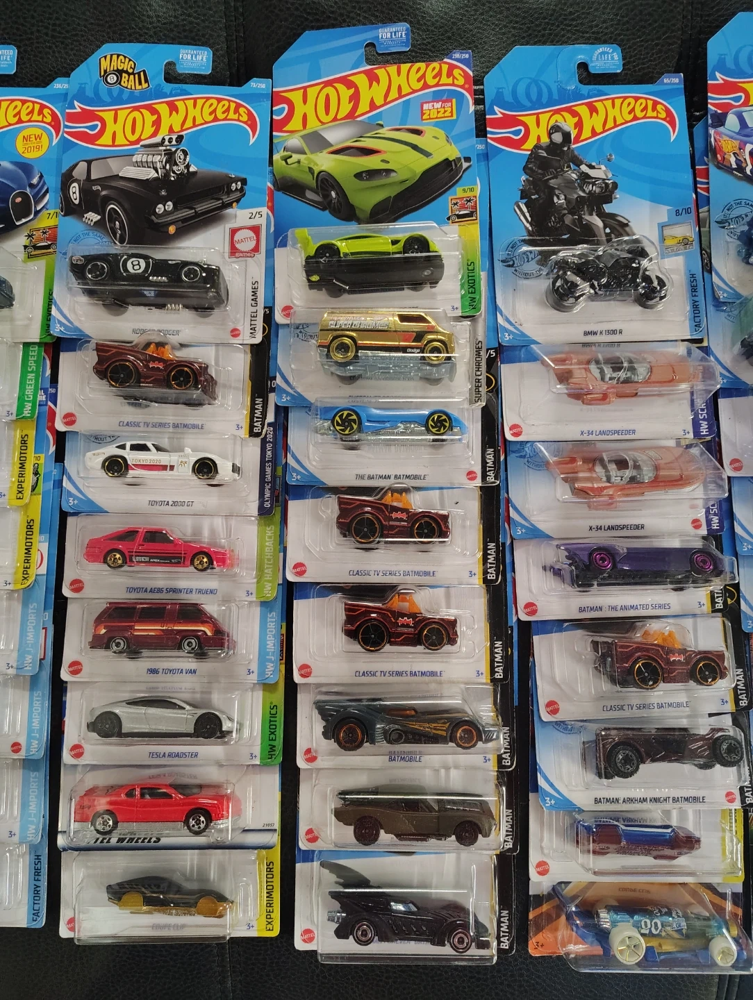 Selling a lot of variety of Hot Wheels diecast (50 count) cars! All are in their original packaging. Great for collectors or kids who love playing with toy cars. Check out the photos to see the different models available there's a treasure hunt included as well.