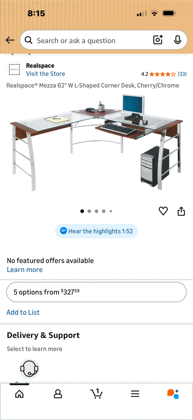 Realspace Mezza 62" L-Shaped Corner Desk - Cherry/Chrome