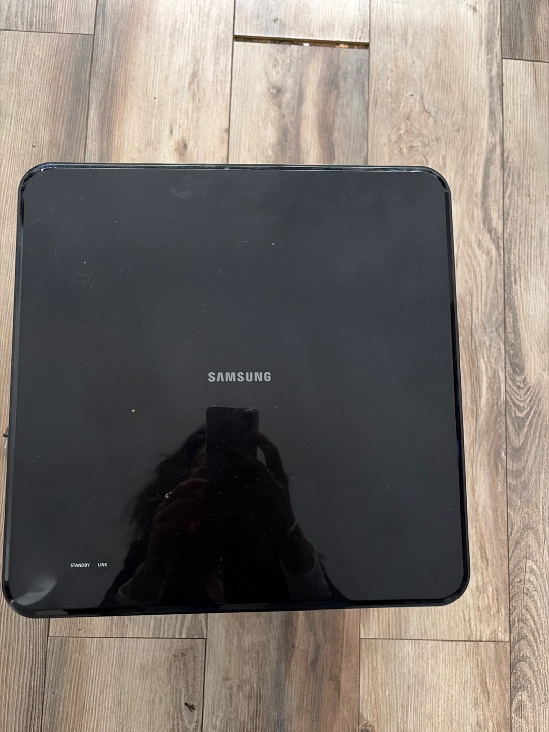Selling a Samsung wireless and active subwoofer in black. It's in good condition and ready to enhance your sound system. Perfect for movies or music!