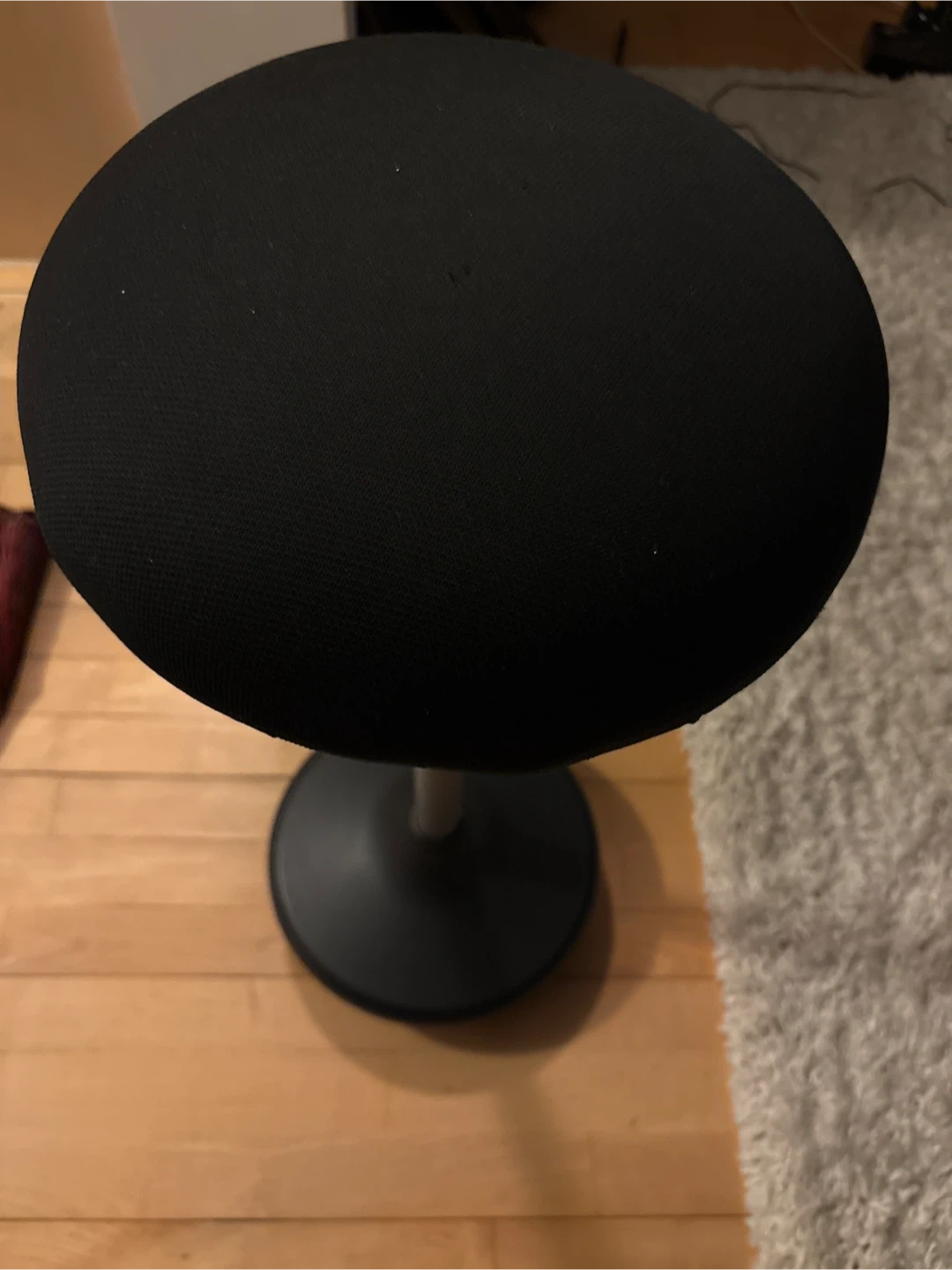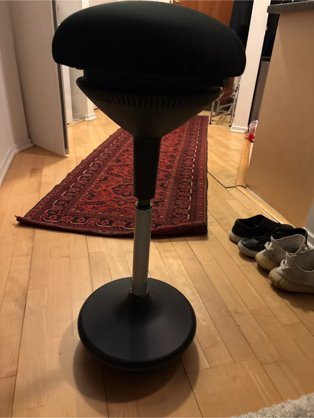 This black stool features an adjustable height mechanism for personalized comfort. Its sturdy base ensures stability during use. It's a versatile seating option for various spaces.