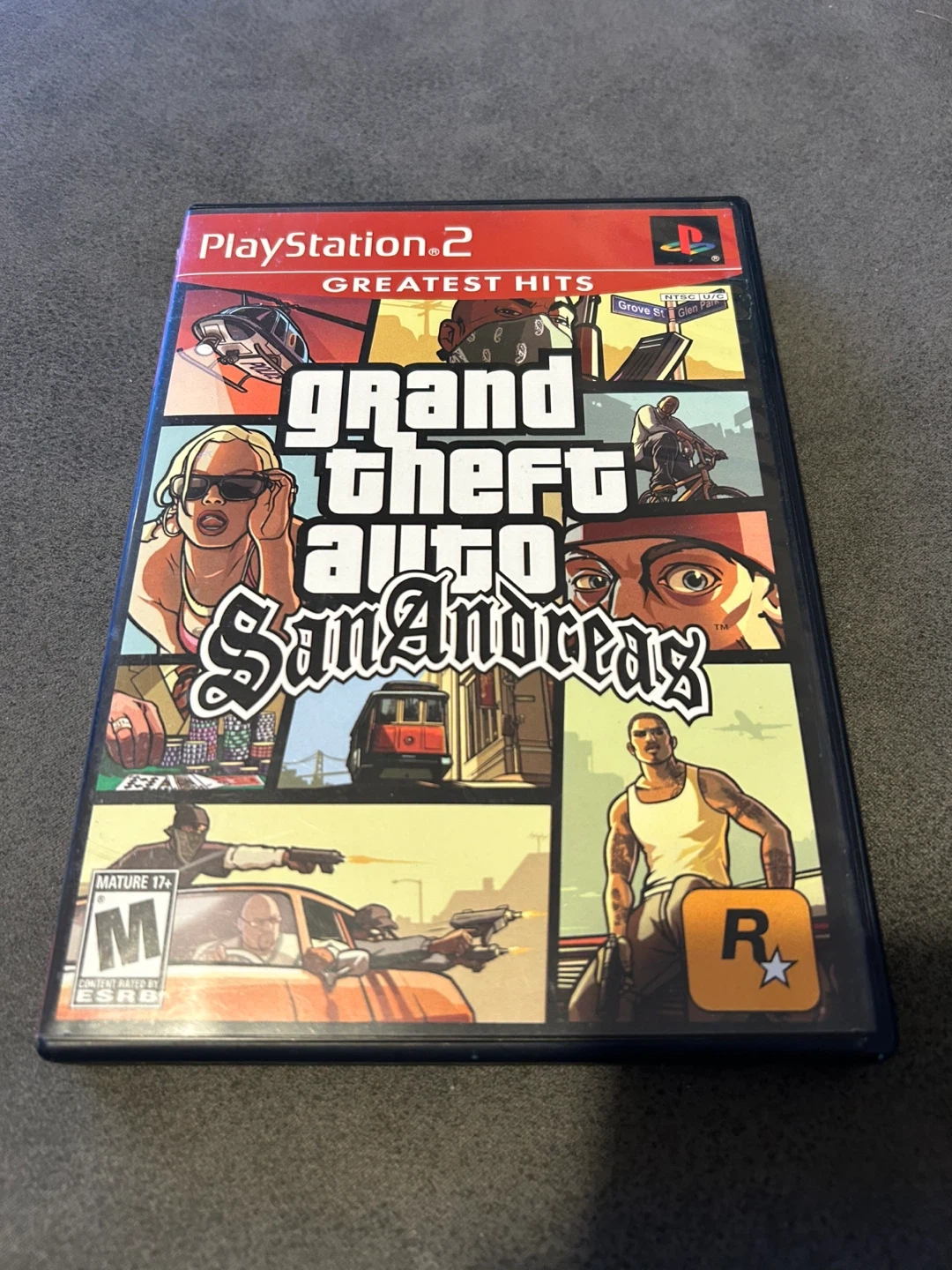 This is Grand Theft Auto: San Andreas for the PlayStation 2. It's the Greatest Hits edition and includes the original case and disc.
