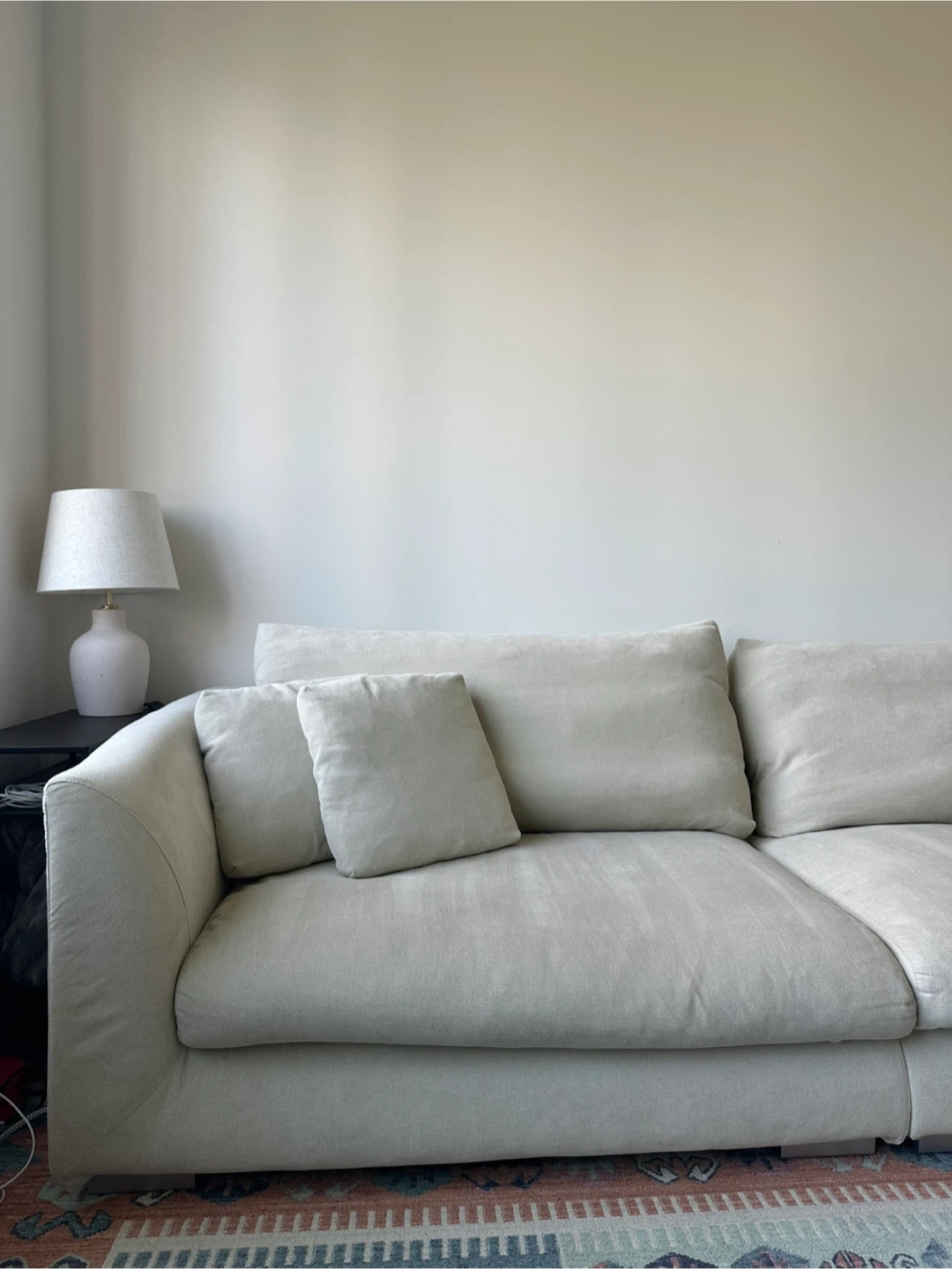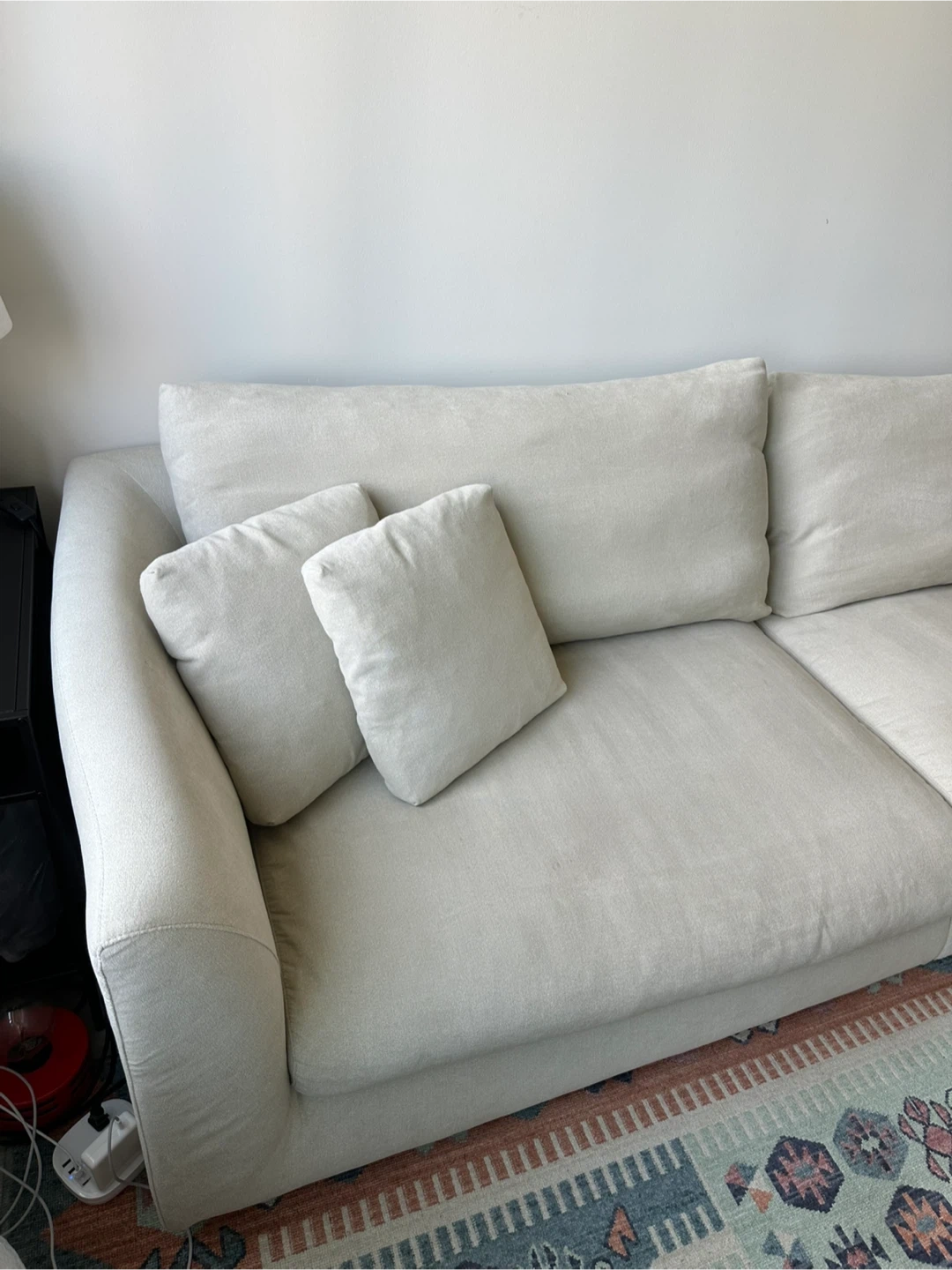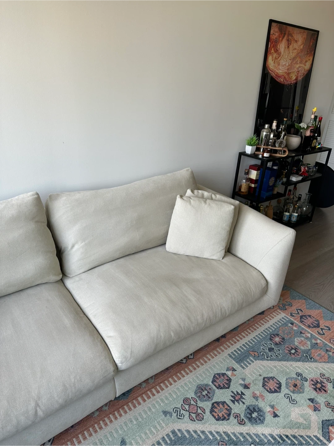 60Selling a very comfortable cream-colored sofa. It's in really good condition and ready for a new home! Dimensions: 103"W x 39"D x 32"H Sells brand new for $1.5K https://valyoufurniture.com/products/feathers-sofa?variant=46559356092636 Pick up in downtown Brooklyn / Fort Greene