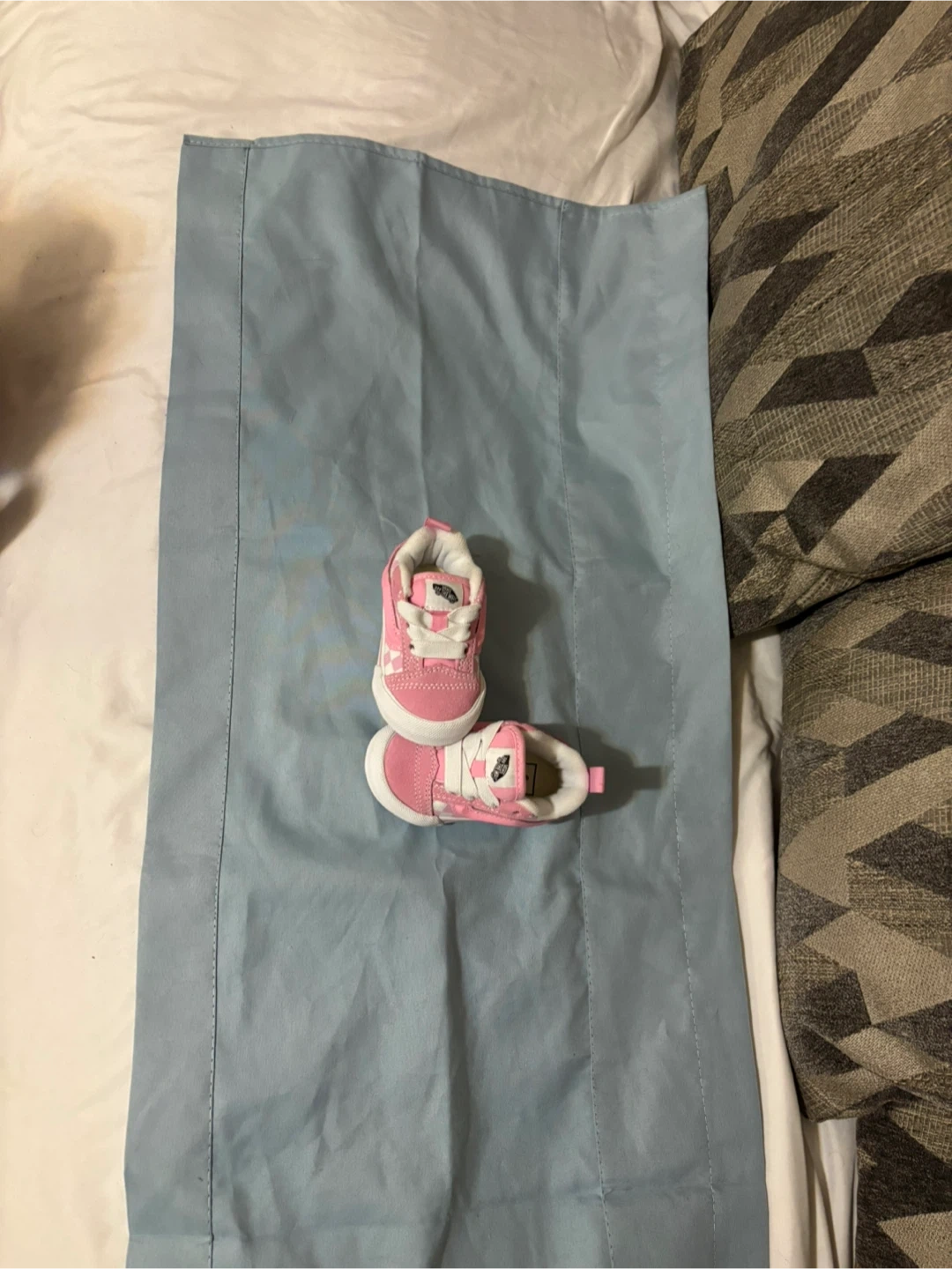 Cute pink Vans toddler shoes! Perfect for your little one's first steps or just looking stylish. They're in great condition and ready for a new home. Never worn. Size 4