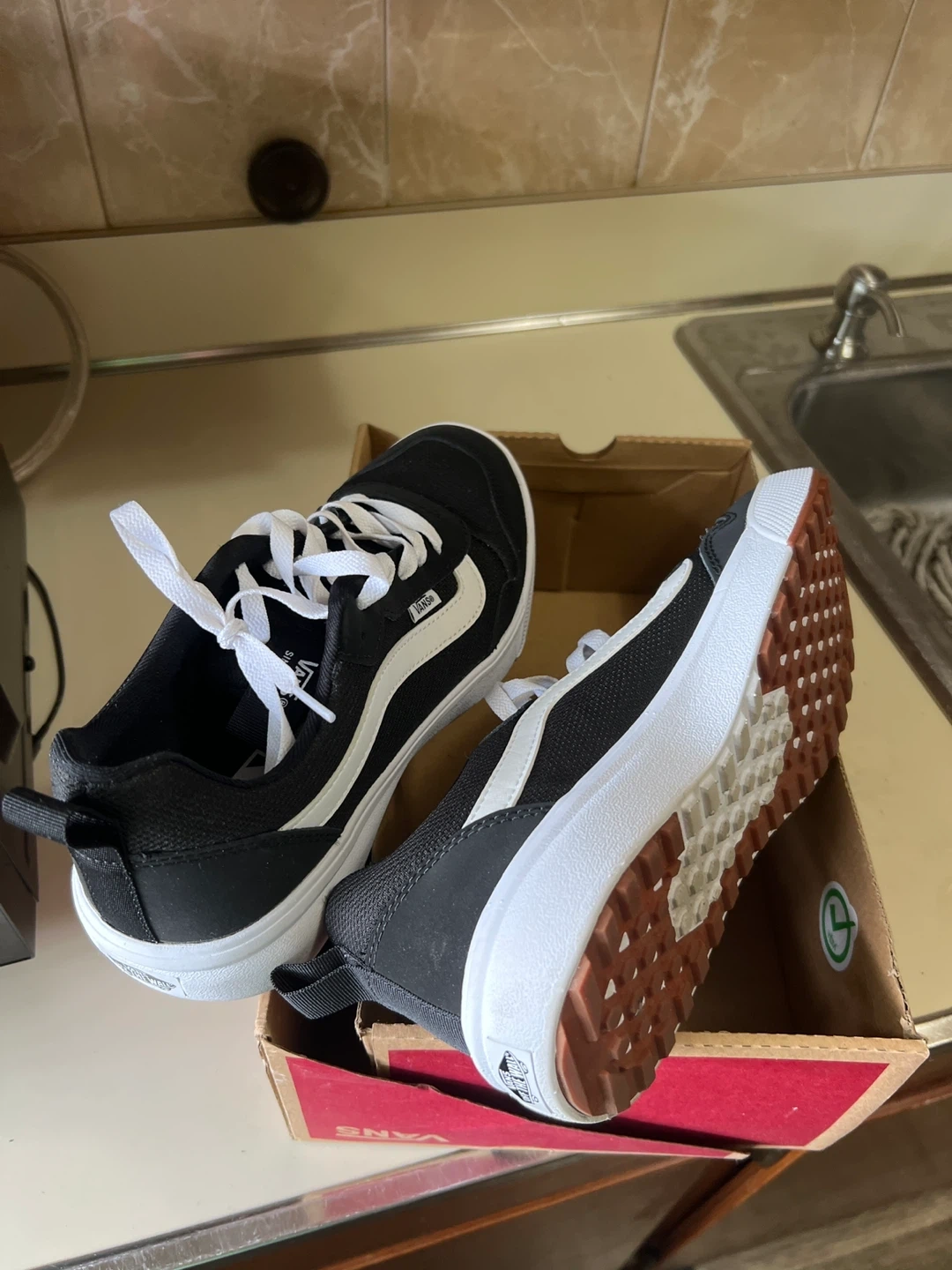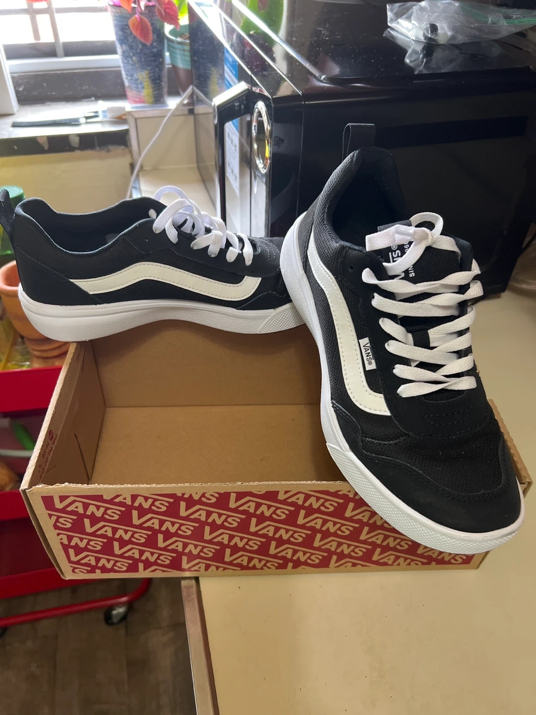 Selling a pair of Vans Range EXP shoes in black and white! They are in good condition and come with the original box. These shoes are stylish and comfortable for everyday wear