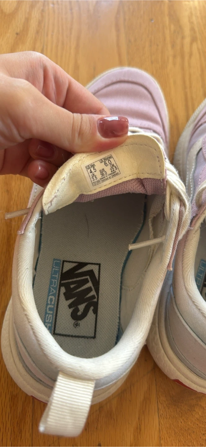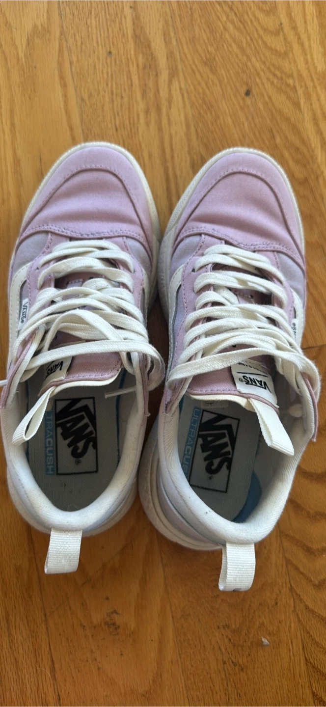 10Selling a pair of Vans UltraRange Rapidweld shoes in women's size 6. They are a light purple color and have a white sole. They feature Vans' UltraCush technology for added comfort. Perfect for everyday wear!