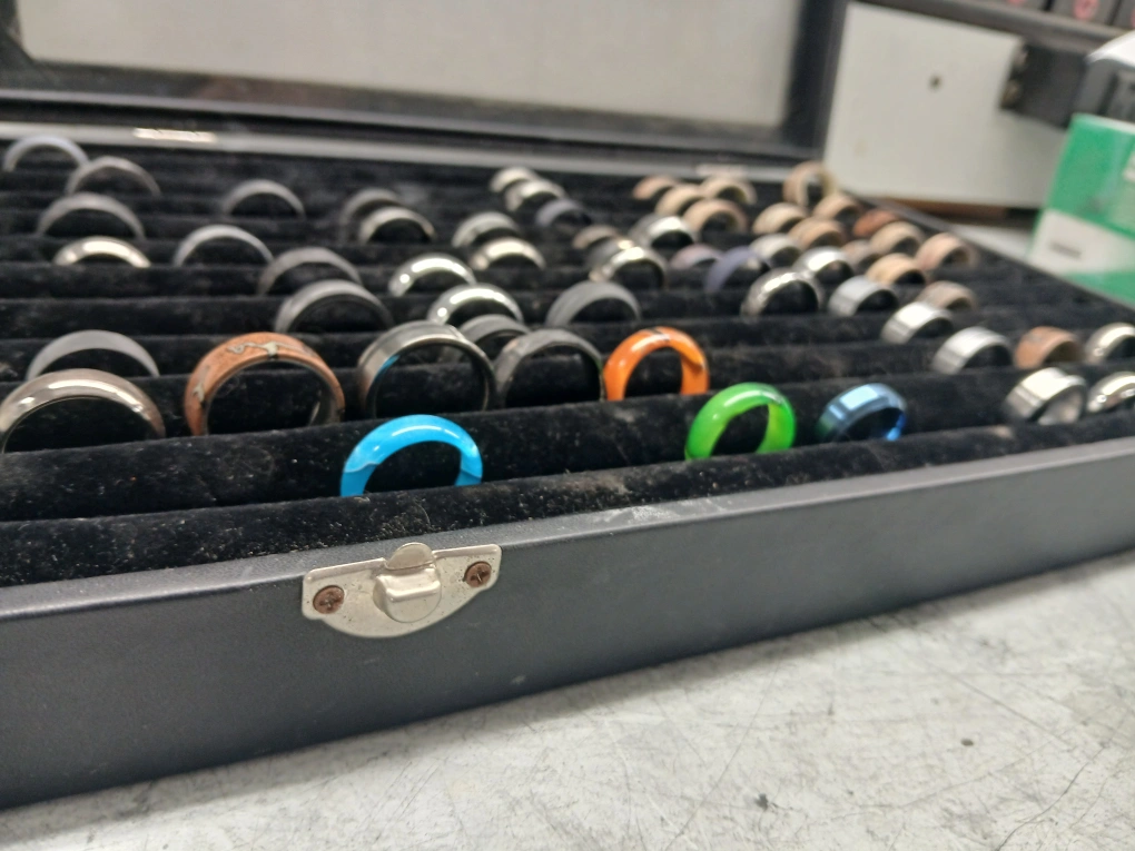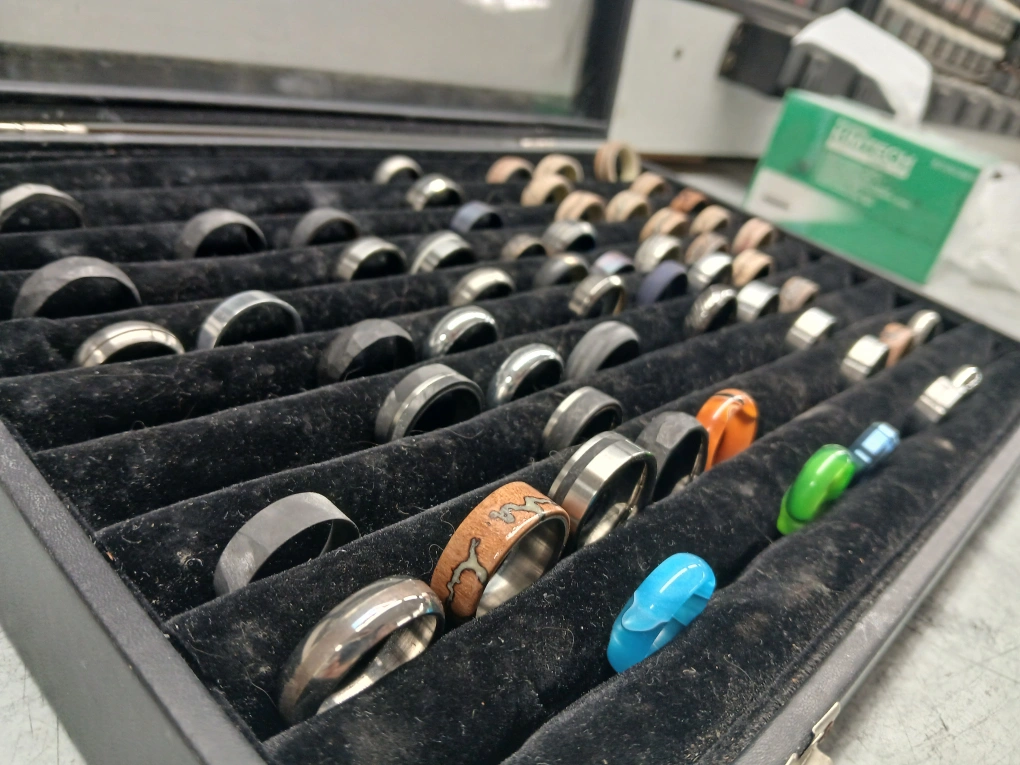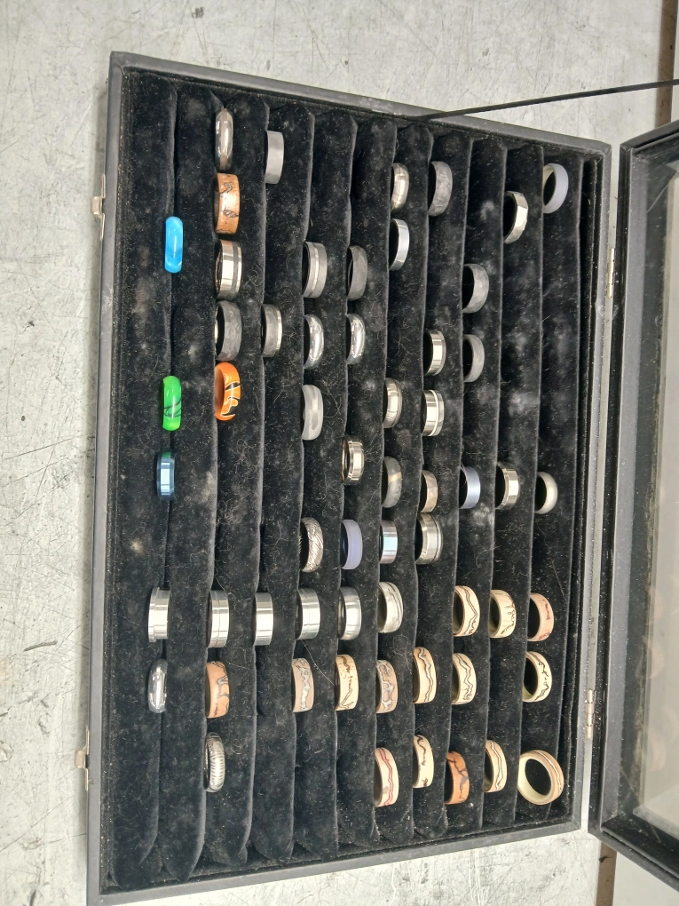 I have a variety of rings available. They come in different colors and designs. Please take a look at the photos to see if there's anything you like! Note in the pictures there are plenty of rings, I just sell carbon ones not silver nor gold or wood just carbon and if you are a serious buyer text me to exist of rings that you like with your finger size?