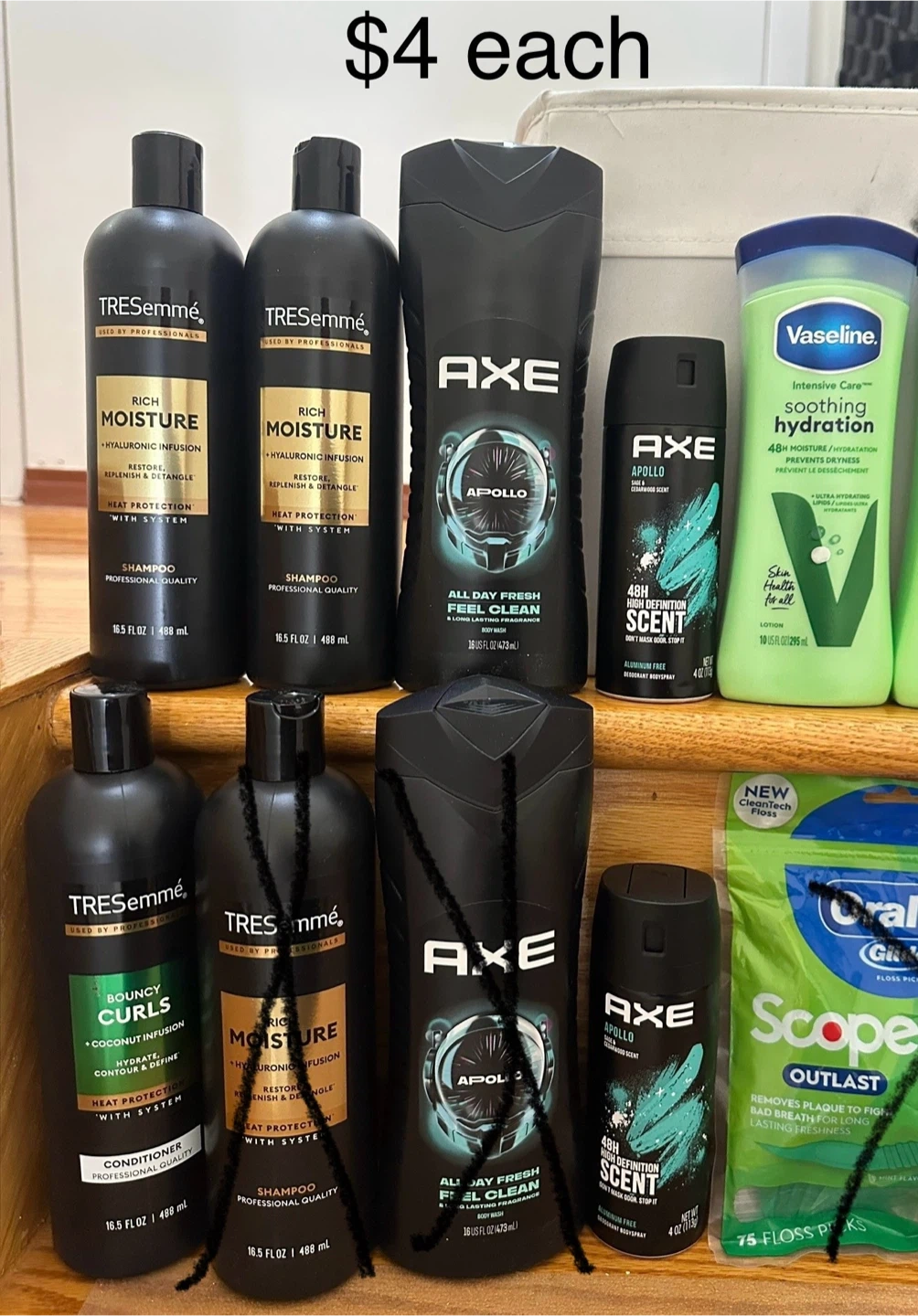 14I have a variety of shampoo, conditioner, body wash, and toothpaste pick up only