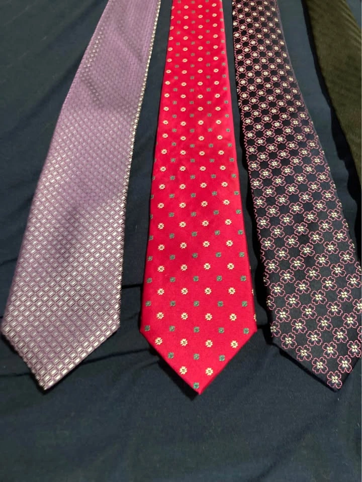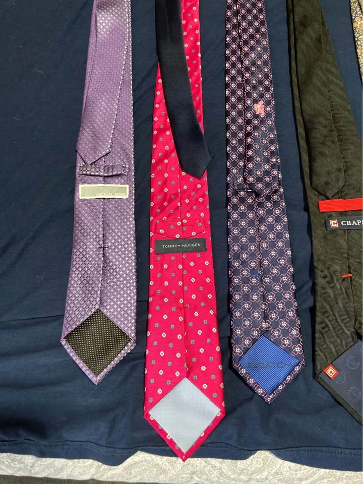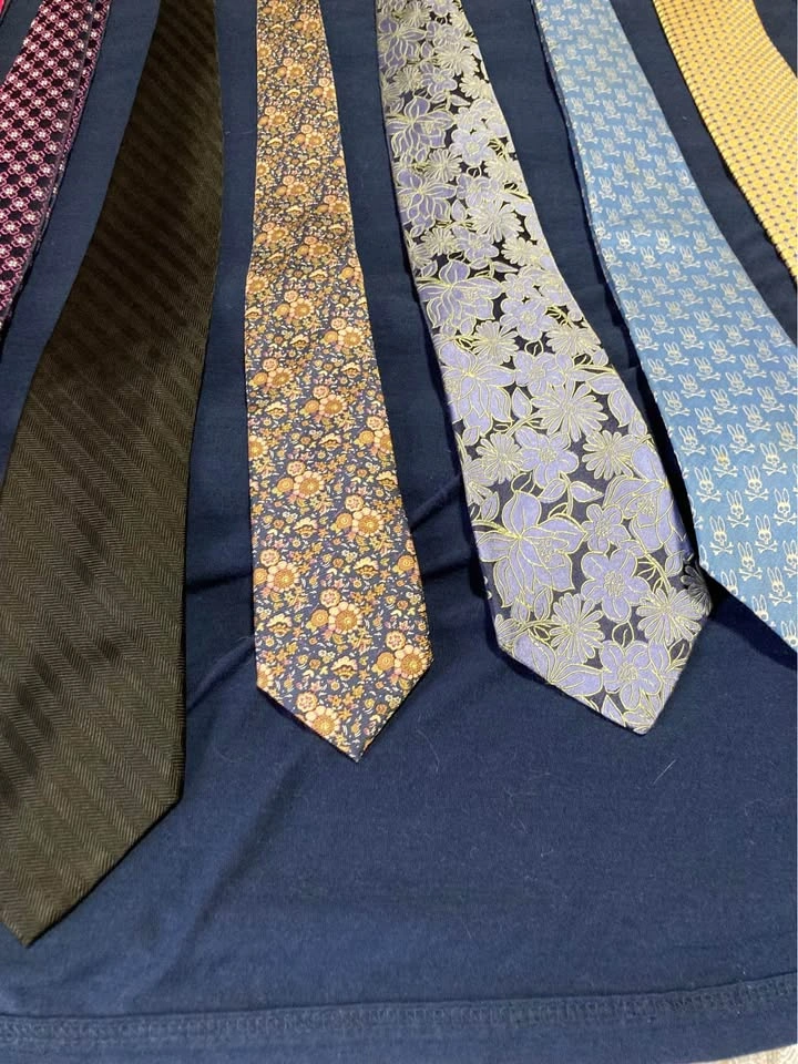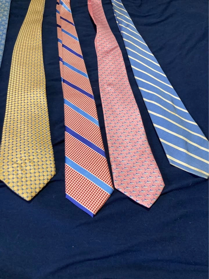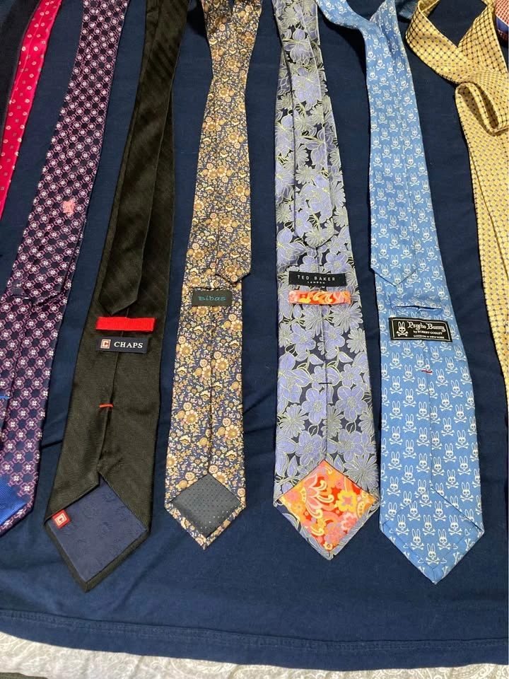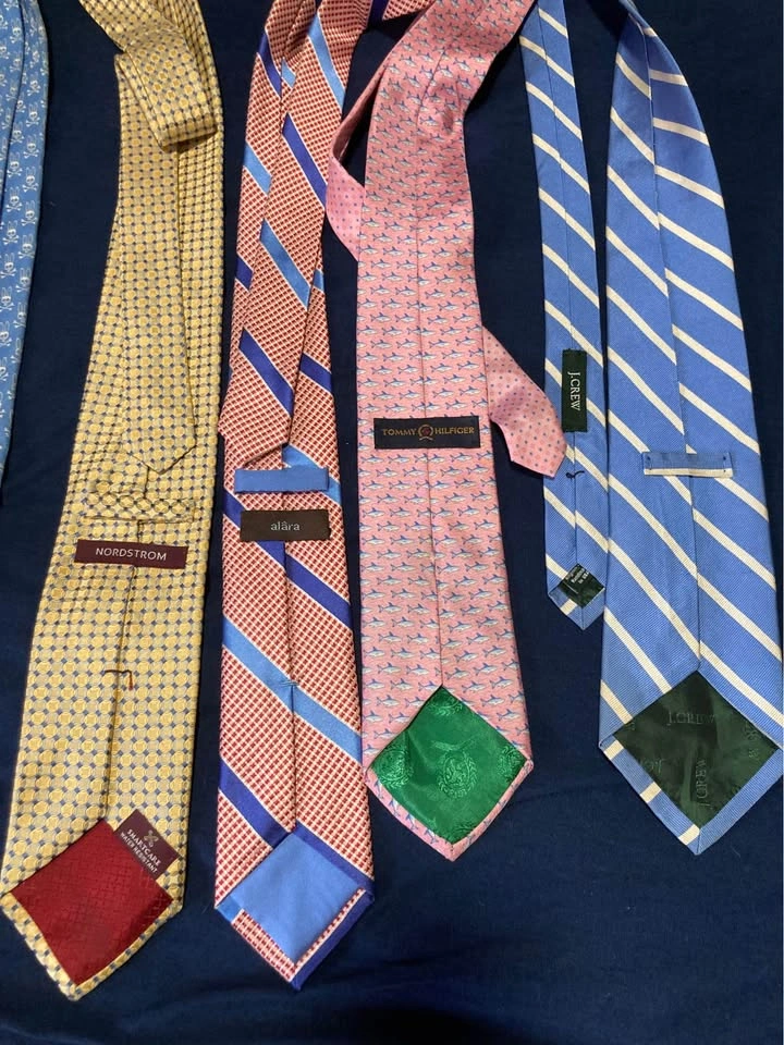 65Various neckties, various designers, various conditions. $10 apiece. Dry clean only. Blue striped J Crew is $5 because of a stain to front of tie which should be gone when dry cleaned. Tie hanger is $5. Pickup in Portage Park, perfect gifts for Christmas.