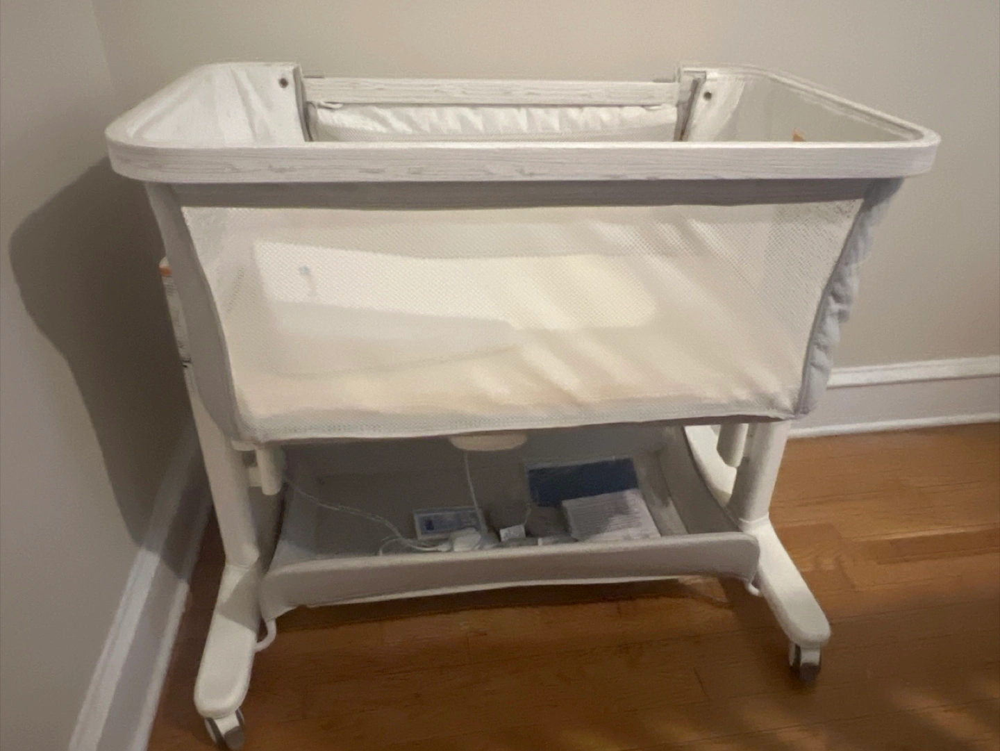Rocking Bassinet for Baby Electric 3 Motion Automatic Bedside Sleeper Auto Rolling Newborn Cradle Rocks Itself 5 Height Adjustable with Music, Wheels, Storage, Grey & White . It's in great condition and ready for a new home. Great for newborns to 12 months old