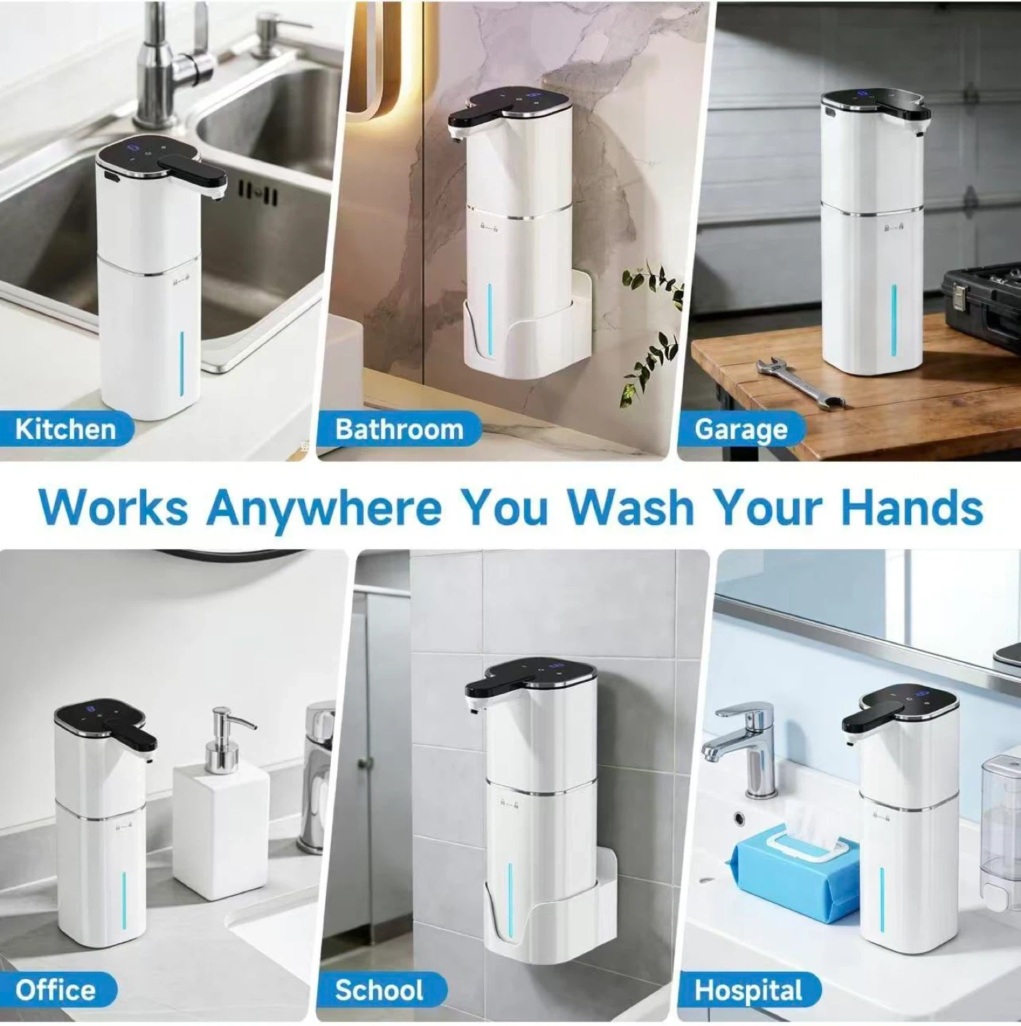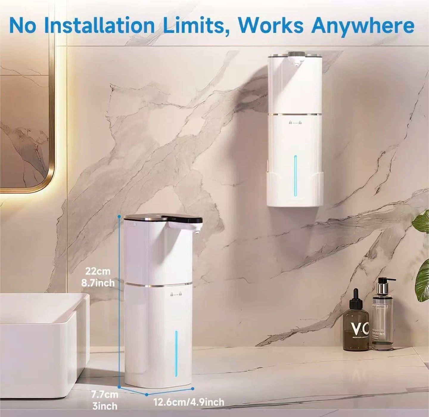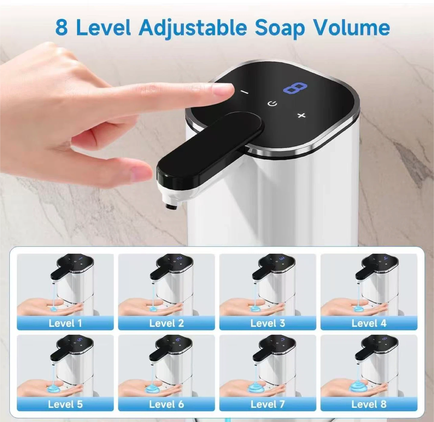 Upgraded Larger Capacity Automatic Dish Soap Dispenser Touchless, 17.6oz Liquid Hand Soap Dispenser for Bathroom Kitchen, Rechargeable 2000mAh, 8 Adjustable Levels, Wall Mount & Countertop