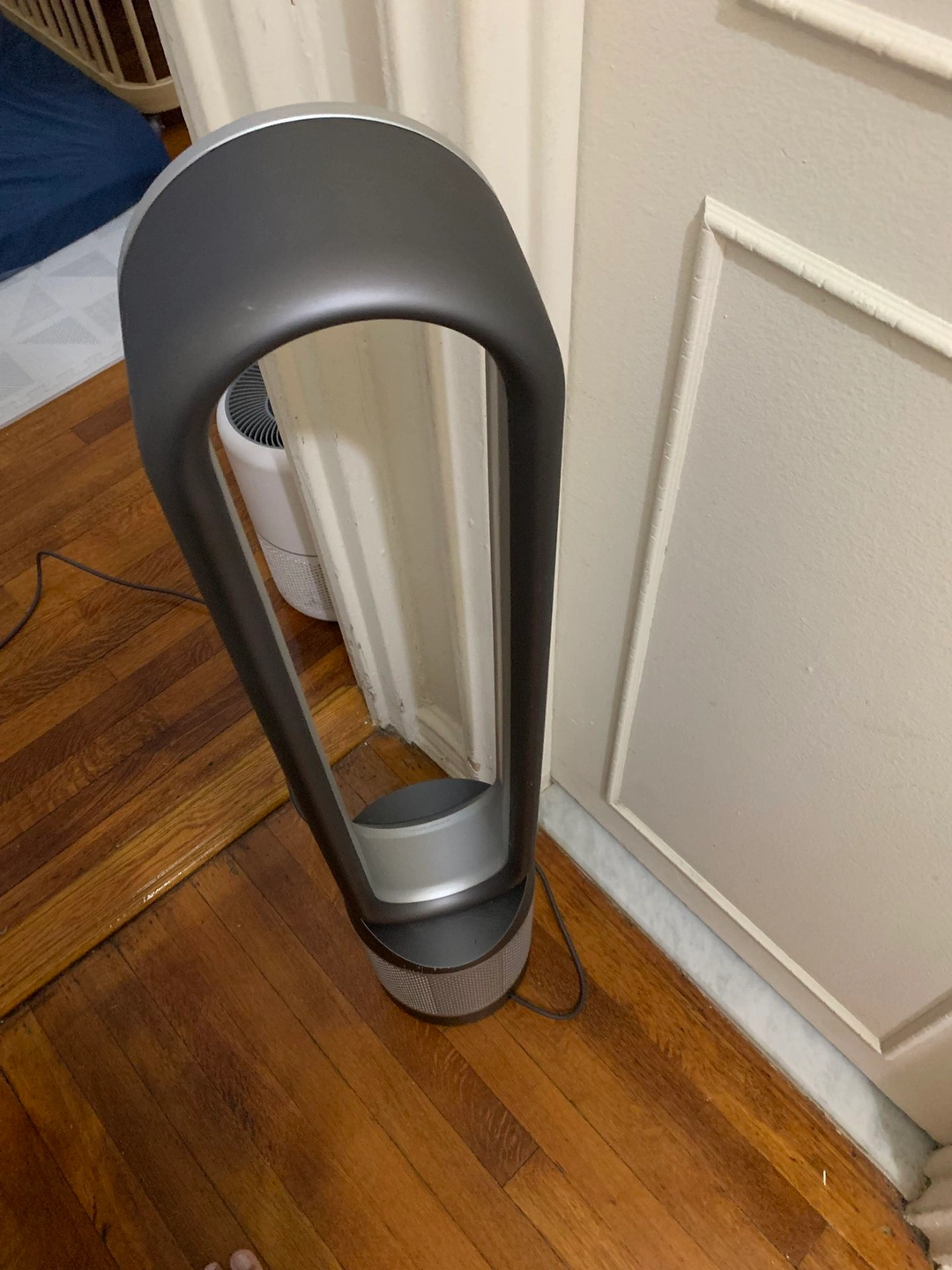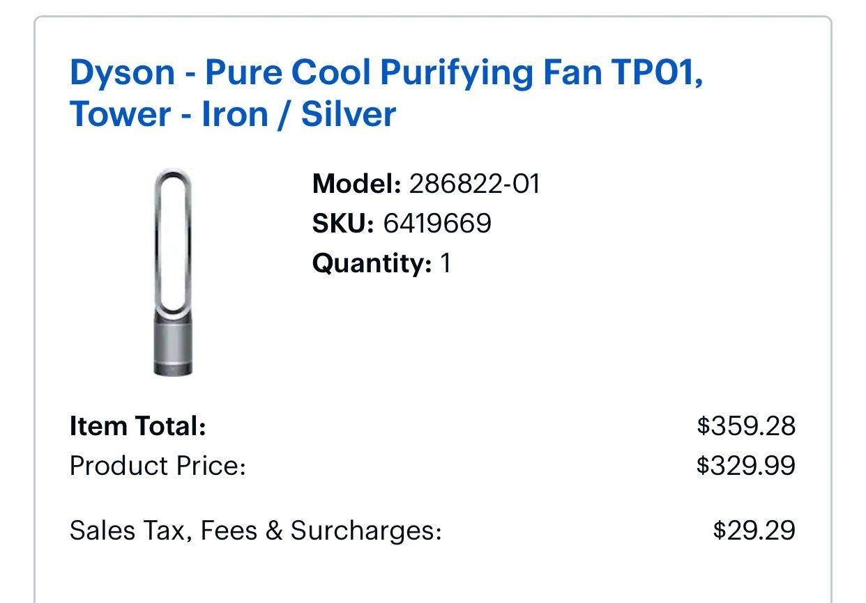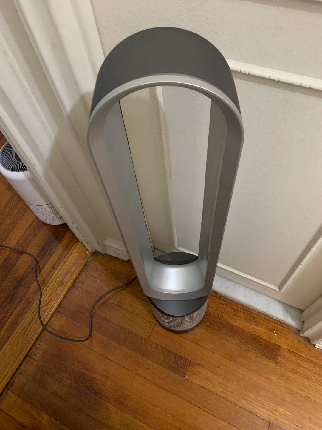 The Dyson TP01 is a Dyson Pure Cool purifying tower fan that combines powerful, bladeless fan cooling with HEPA air purification, capturing 99.97% of allergens and pollutants down to 0.3 microns. It is controlled by a remote and features oscillation, a sleep timer, and filter life alerts. It offers 10 fan speeds, focused or diffused airflow, and draws pollutants into its 360° filter system for whole-room purification, making it great for effective, quiet air cleaning and cooling. Feel free to message if you have any questions!