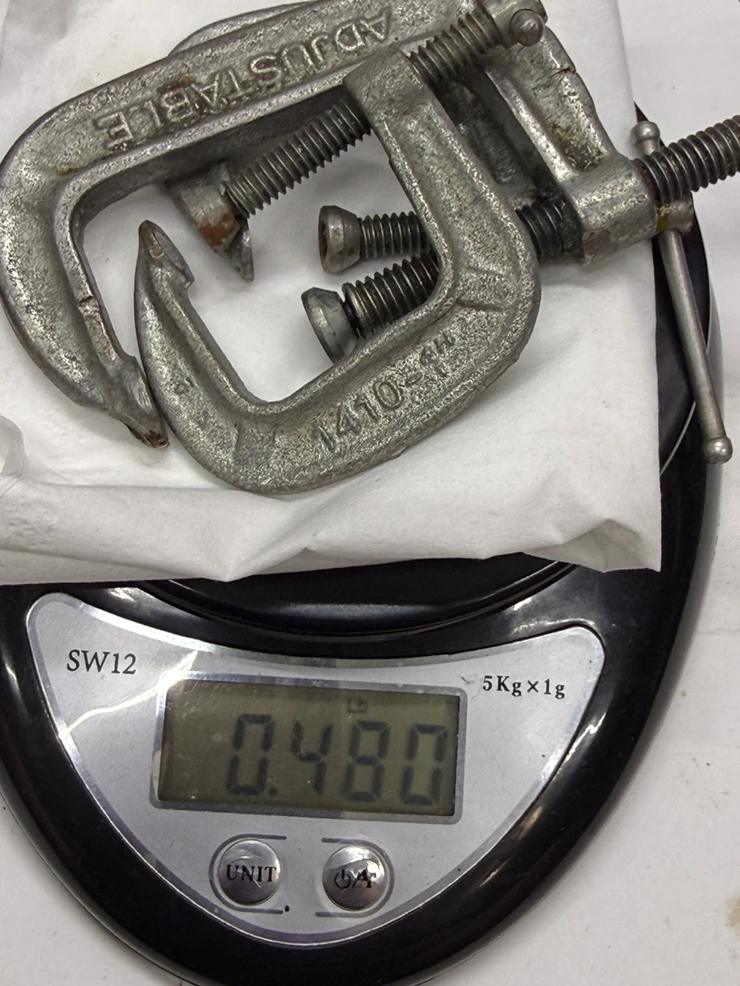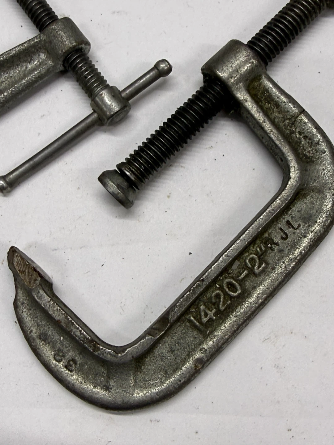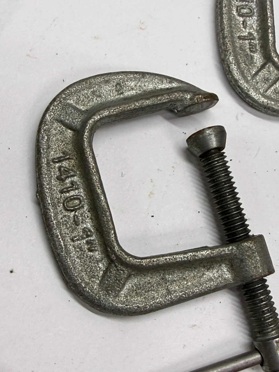 Three vintage adjustable C-clamps, likely metal. Sizes are approximately 1.5", 2", and 2.5". They're useful for holding materials together while gluing or working!
