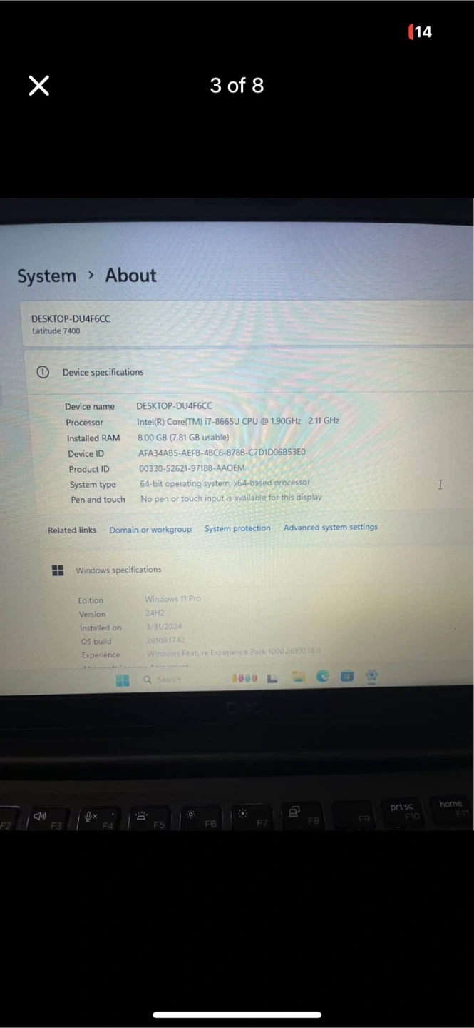 Dell Latitude 7400 8th gen i7 Windows 11 pro charger