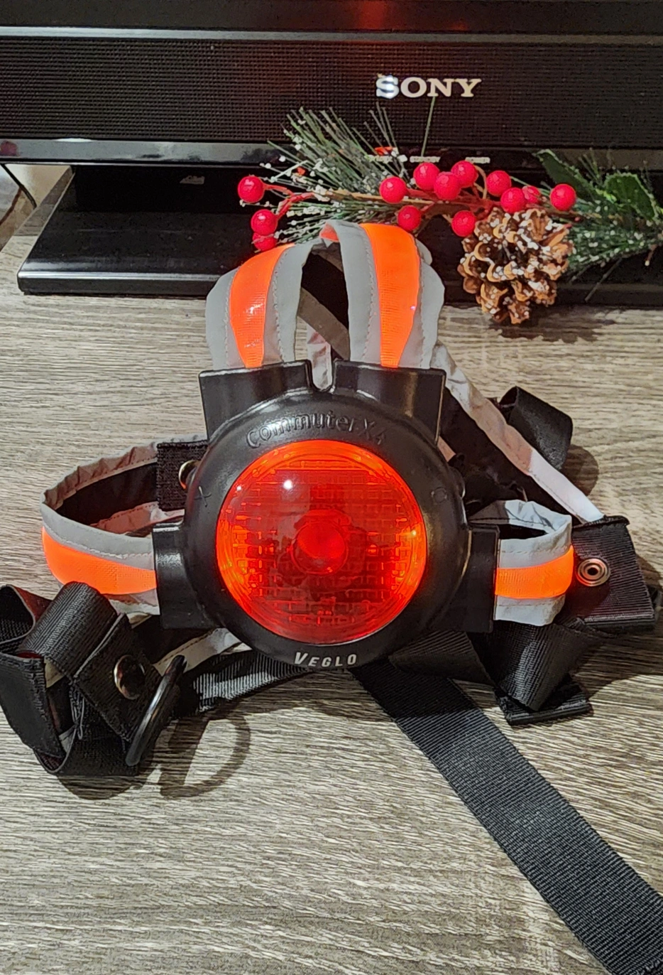 Wearable fibre optic rear light. Helps drivers see you clearly at night.