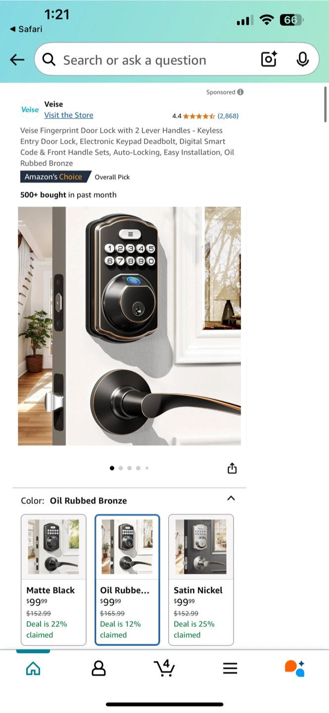 167Keyless entry door lock. Electronic keypad deadbolt. Includes smart code & front handle sets. Auto-locking. Easy installation. New, in box.