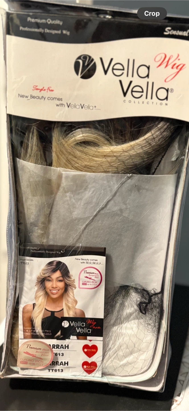 Selling a brand new Vella Vella wig, model TT613! It comes in its original packaging and includes a wig cap. This premium quality, professionally designed wig is tangle-free and made with premium heat-resistant fiber that's safe for curling irons up to 375°F