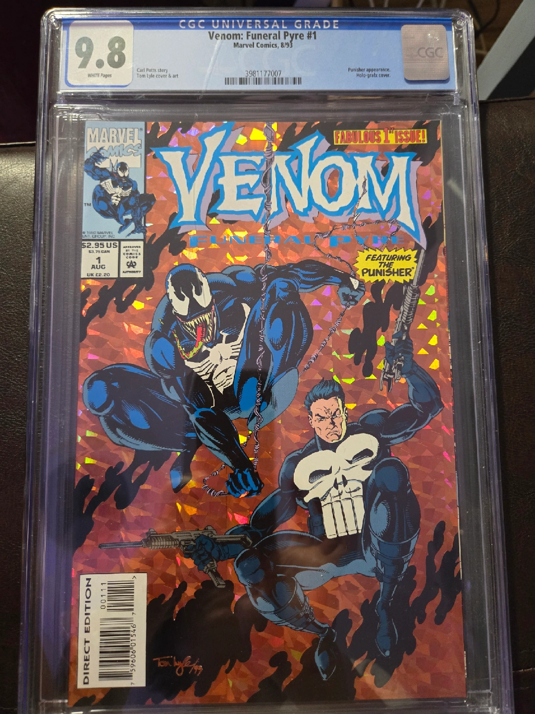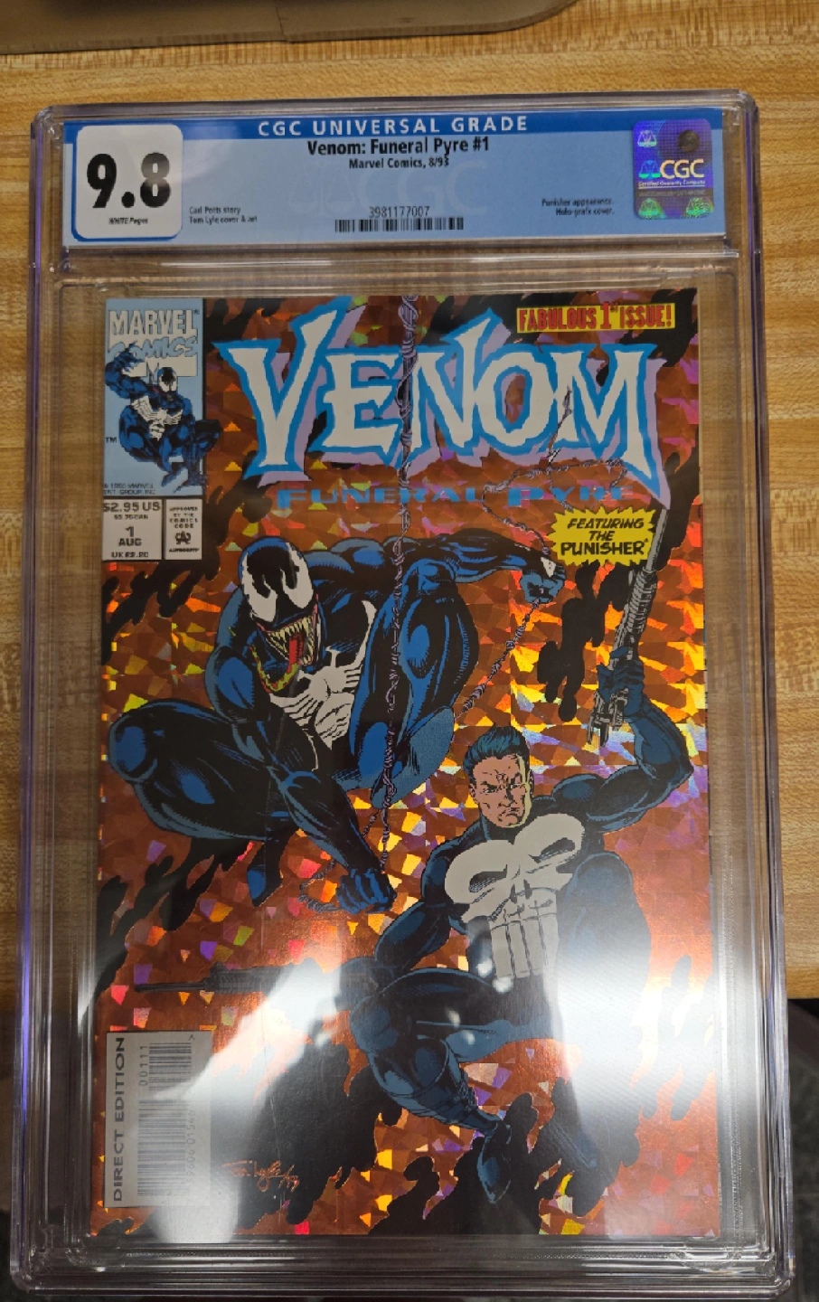 Selling a Venom: Funeral Pyre #1 comic book, graded CGC 9.8. Features Venom and Punisher!