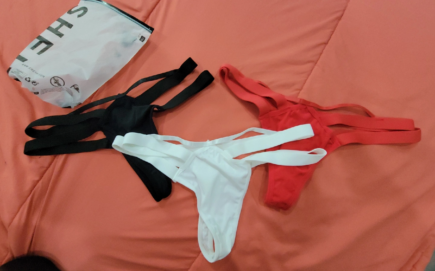 15son tres ropas interiores muy sexys en color negro, rojo y blanco son alicradas en talla M