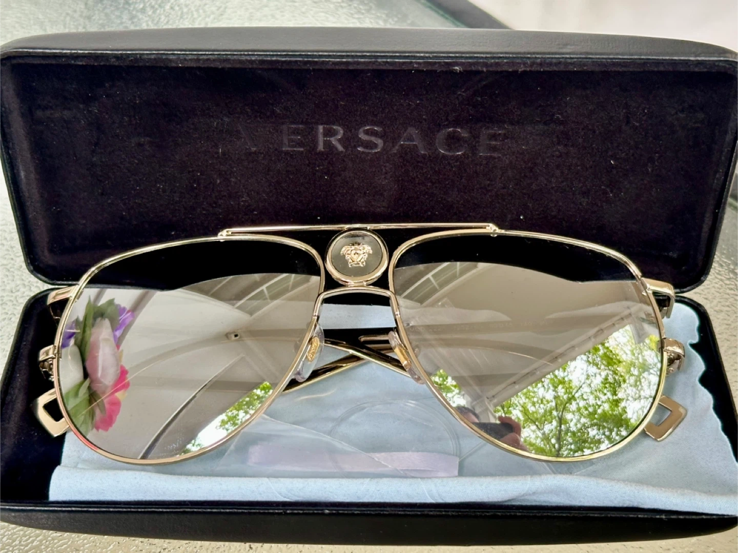 Selling a pair of Versace aviator sunglasses in gold! They come with the original Versace case. These sunglasses are in great condition and ready for a new owner