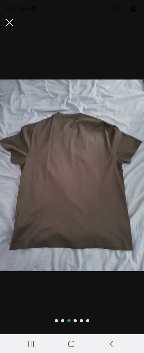 Dark-colored t-shirt. Features a graphic on the front. A great shirt for a casual outing, so that you may feel at ease.
