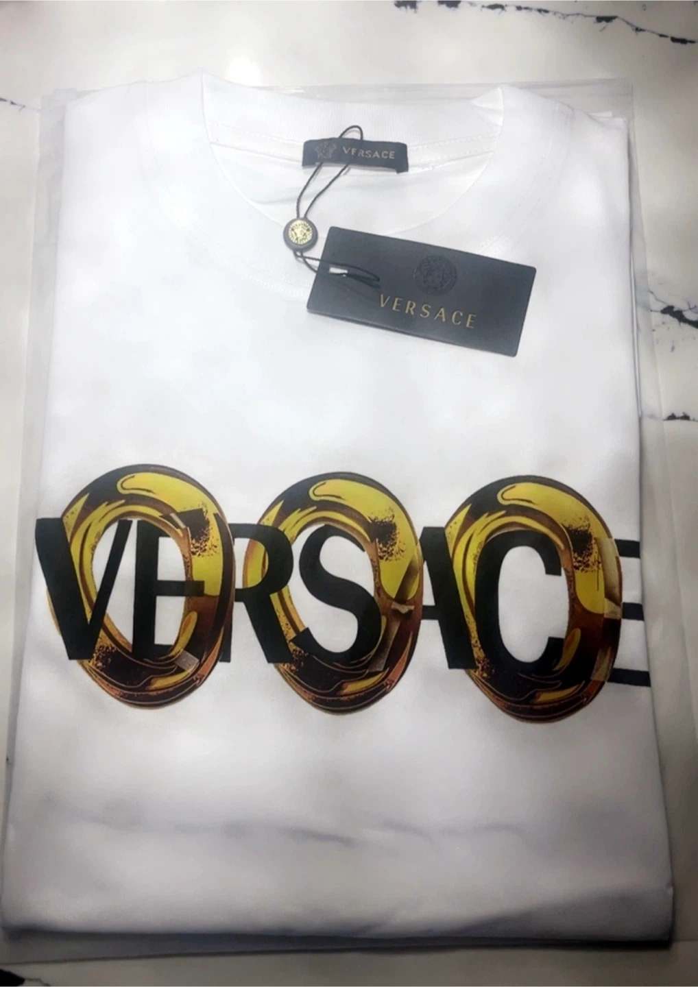 82Selling a Versace white t-shirt in size L. The shirt features a large Versace logo on the front. It's in great condition and comes in its original packaging in size M, L, XL
